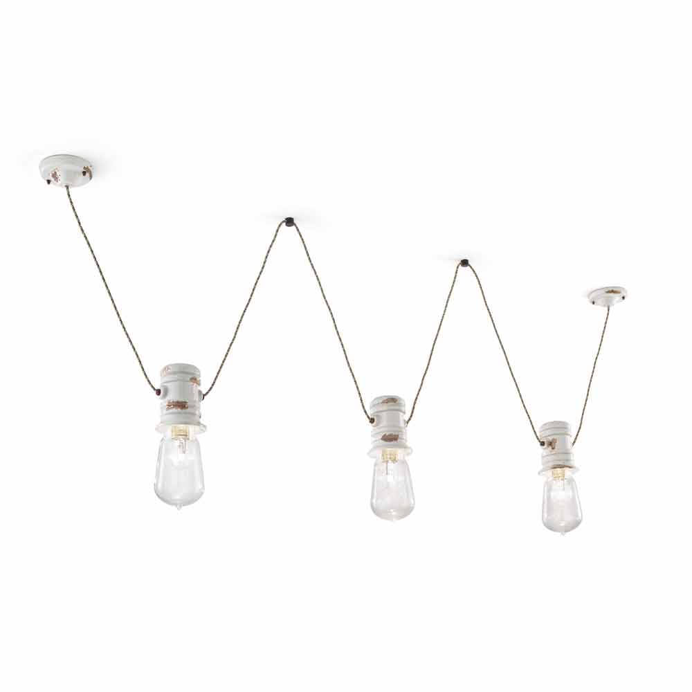 Jayda Ferroluce handgefertigte Pendelleuchte mit drei Punkten Jayda ist eine fantastische Pendelleuchte bestehend aus drei Strahlern im Country-Vintage-Stil. Von erfahrenen Handwerkern in Italien handgefertigte Aufhängung. Jayda ist eine originelle Lampe mit unregelmäßigen Merkmalen, es ist eine Kombination aus Keramik, Glas und Metall, eine Verbindung, die sie in ihrer Art einzigartig macht. Dank des glänzenden Glases breitet sich das Licht weit aus und erhellt den gesamten Raum, in dem es eingesetzt wird. Die vernachlässigte Wirkung der Oberflächen ist ein gewünschtes Detail, das durch präzise technische Schritte erzielt wird. Dank der Verwendung von Glasuren, die der Oberfläche einen taktilen und visuell lebendigen Aspekt verleihen, und der Retro-Farben scheint es, als hätte die Zeit ihre Spuren auf der Lampe selbst hinterlassen. Ein Design, das sich dem Luxus widersetzt, aber harmonisch mit ihm koexistiert. Ideal für Umgebungen mit urbanem Stil und Vintage-Flair. Jayda wird mit einem 4 Meter langen Stromkabel geliefert und Sie können die Anordnung der Strahler im gewünschten Abstand wählen. Kleine Details für große Wirkung mit antikem Flair! Bringen Sie einen Hauch von Design in Ihr Zuhause! Lampe in verschiedenen Ausführungen erhältlich. Überprüfen Sie die Farbkarte und geben Sie den Code der gewünschten Ausführung in das entsprechende Feld ein!