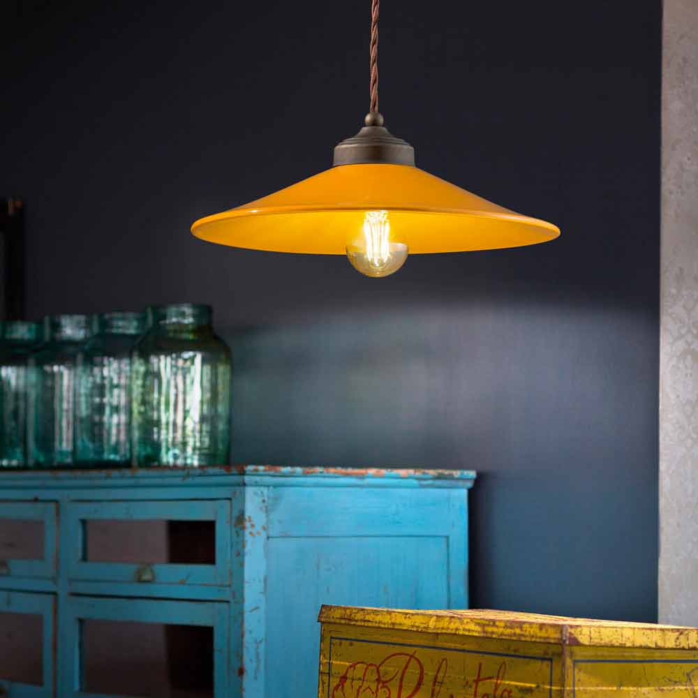 Aufhängung aus farbiger Keramik und antikem Messing Maya von Ferroluce Maya ist eine fantastische Pendelleuchte mit einem Rertò-Stil, der in einem modernen Schlüssel neu aufgelegt wurde und von erfahrenen Handwerkern in Italien handgefertigt wird. Diese wunderschöne Pendelleuchte besteht aus einer antiken Messingstruktur mit einem Diffusor aus glänzend farbiger Keramik, erhältlich in verschiedenen Farben. Farbige Keramik passt gut zu antikem Messing und diese Verbindung ist die Stärke dieser Leuchte. Die Aufhängung wurde für Umgebungen mit einer einhüllenden Atmosphäre entwickelt und ist dank eines einzigartigen und originellen Designs in der Lage, die anspruchsvollsten Anforderungen zu erfüllen. Ein Design, das sich dem Luxus widersetzt, aber harmonisch mit ihm koexistiert. Design, das die Wesentlichkeit des Gebrauchs bewahrt und mit einer feinen Balance zwischen Formen und Tönen beruhigt. Das breite und diffuse Licht bringt eine warme und einladende Atmosphäre in alle Umgebungen, in die es eingesetzt wird. Es sind diese einfachen und zarten Formen, die die Aufmerksamkeit auf sich ziehen und die Maya in die Lage versetzen, sich an jedes Dekor anzupassen, vom einfachsten und minimalistischsten bis zum klassischsten, wodurch ein zarter Kontrast entsteht. Bringen auch Sie einen Hauch von Design in Ihr Zuhause! Kleine Details für große Wirkung mit antikem Flair! Lampe in verschiedenen Ausführungen erhältlich. Überprüfen Sie die Farbkarte und geben Sie den Code der gewünschten Ausführung in das entsprechende Feld ein!