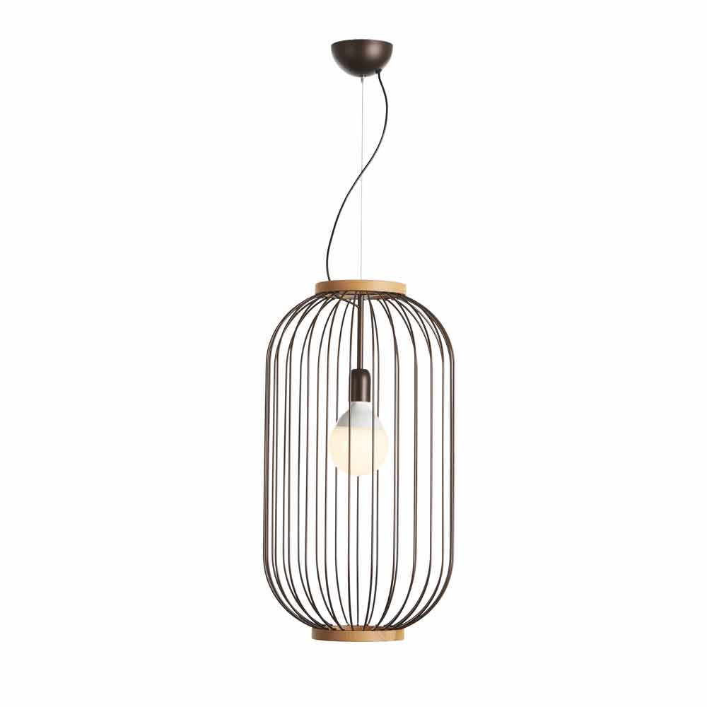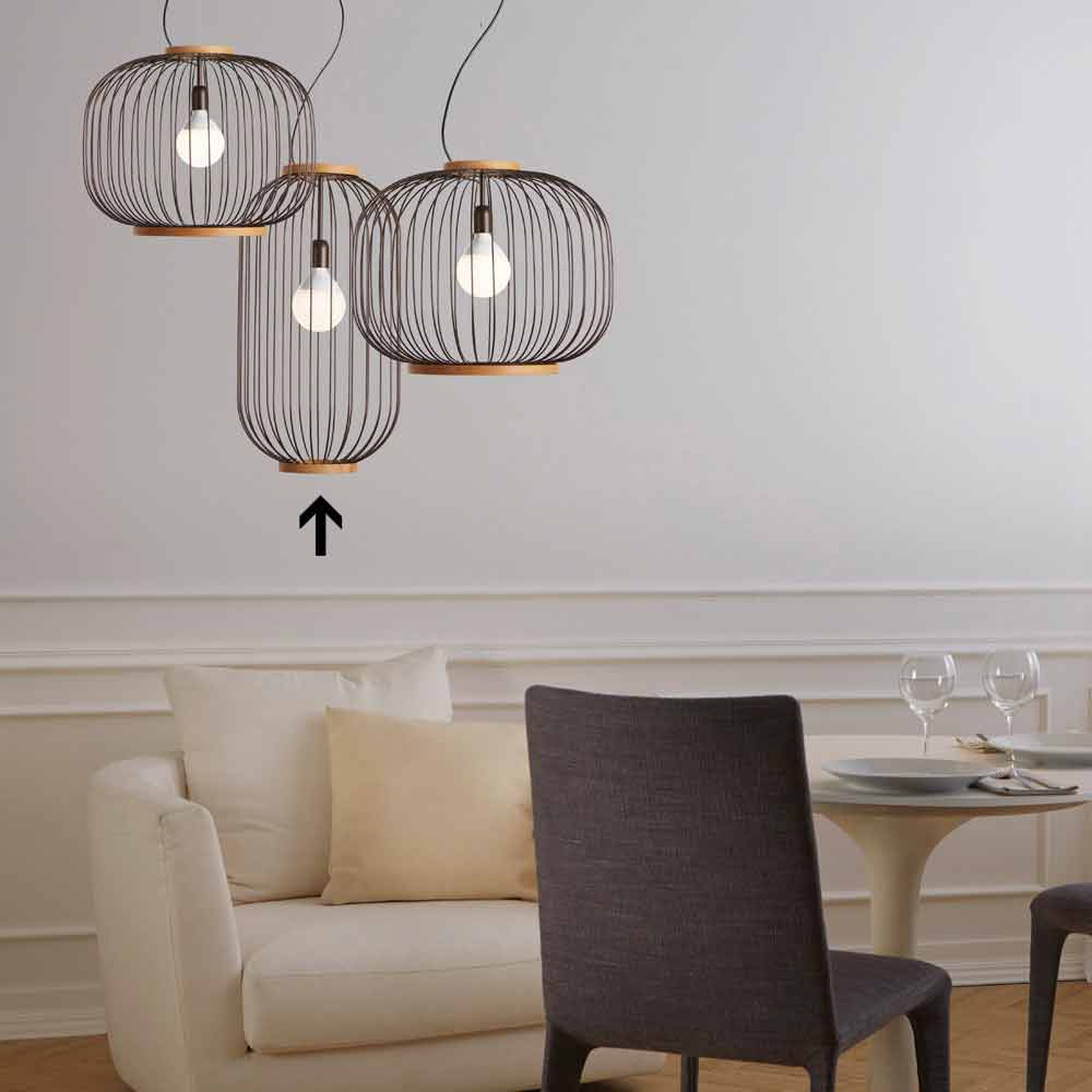 Hängeleuchte aus geformtem Stahlstab und mit Epoxidpulver lackiert. Die zwei Bänder, die den runden Körper schließen, sind aus natürlichem Holz. Bibiana ist auch in kundenspezifischen Farben erhältlich. Fordern Sie ein Angebot an: clienti@viadurini.it . 100% Made in Italy Produkt. Birne: 1 x max 60w - E27 (nicht im Lieferumfang enthalten).