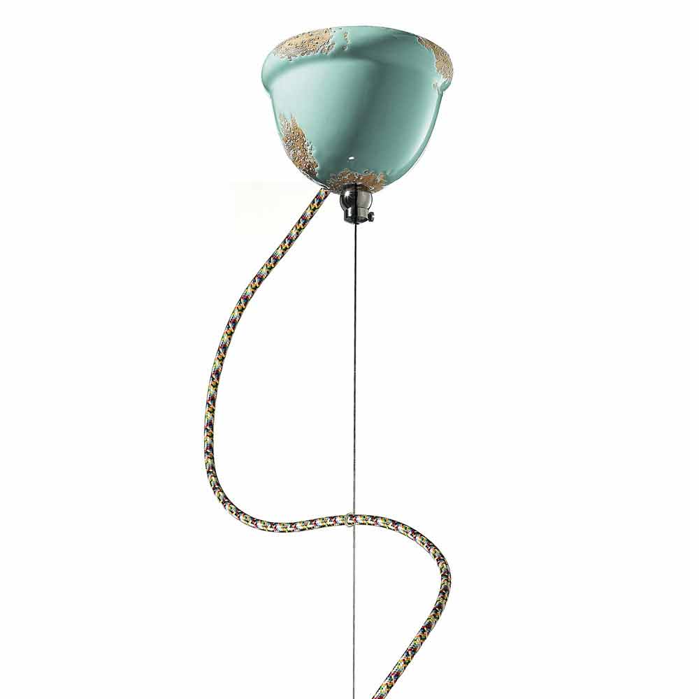 Pendelleuchte im Retro-Stil von Ferroluce Lineare Formen und Abmessungen, die den minimalistischsten Einrichtungsgegenständen Charakter verleihen, sich aber auch in die raffiniertesten Einrichtungsgegenstände integrieren lassen und die industrielle Ästhetik des 20. Jahrhunderts hervorrufen. Die Oberflächen beschreiben eine genaue Studie von Farbe und Farben. Die Geometrien können neu interpretiert werden durch Oberflächen, die mit weichen Glasuren mit Sandeffekt und eleganten Farbtönen bedeckt sind, durch die Verwendung von Glasuren, die der Oberfläche ein taktiles und sichtbares lebendiges Aussehen verleihen, durch Retro-Farben oder durch die Verwendung stilisierter Blumen im perfekten Shabby-Stil Dieses Damast-Finish, das sich auf den Oberflächen ausbreitet und einen faszinierenden Freskeneffekt nachbildet, wird durch chromatische Details und kleine technische Details in der Dekoration erzielt, wodurch sogar die flachen Oberflächen hervorgehoben werden. Ideal für Umgebungen mit urbanem Stil und Vintage-Flair. Wesentliches, rohes Design, entworfen, um ein volles und beruhigendes Licht zu verbreiten. Kleine Details für große Wirkung mit antikem Flair.