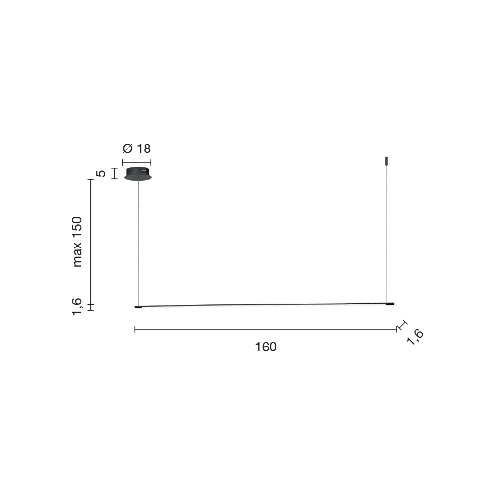 Länge: 160 cm x Tiefe: 1,6 cm x Höhe 1,6 cm