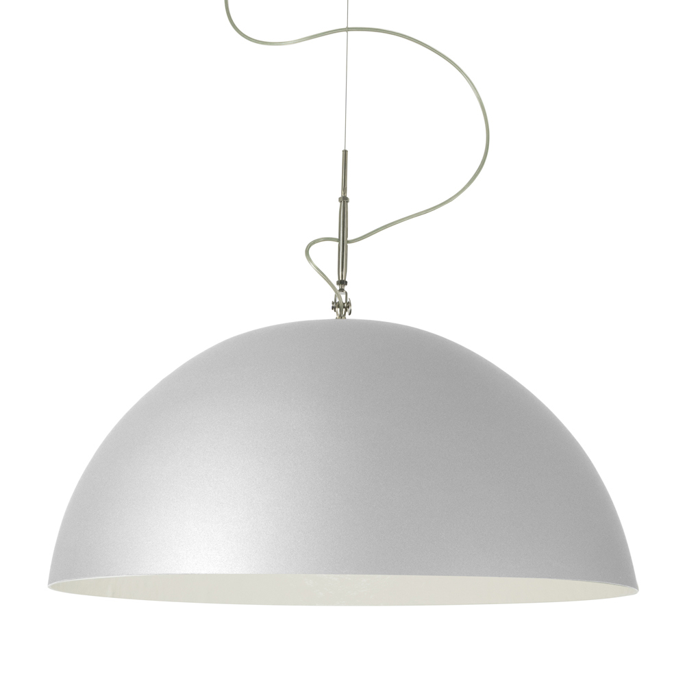 Mit Sorgfalt und Liebe zum Detail hergestellt, um eine magische Mondatmosphäre nachzubilden; ist der innere Teil des Lampenschirms aus Nebulite, einem Material aus Harz und Fasern, dessen Adern der Leuchte diesen besonderen Effekt verleihen. Die Außenseite des Lampenschirms in Laprene und Stahl bildet einen interessanten Kontrast zur Innenseite.