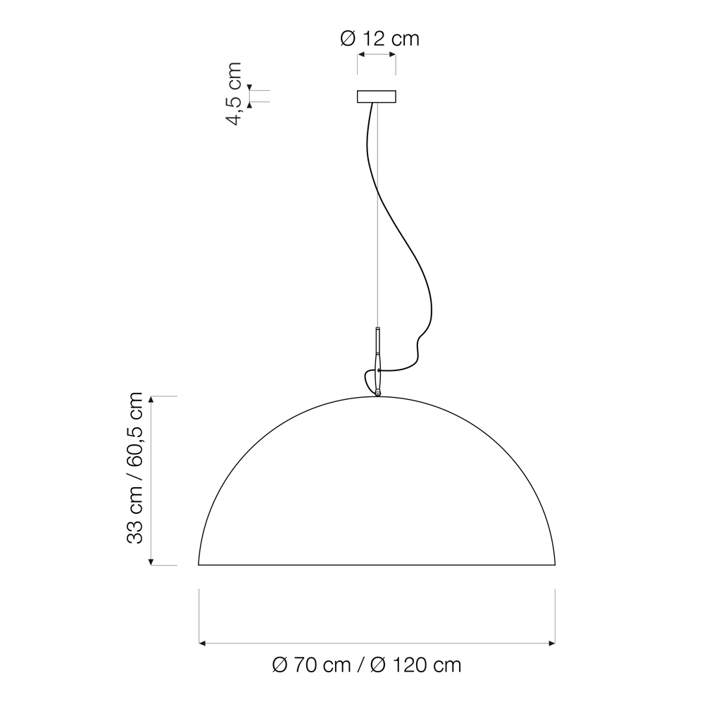 - Ø 120 cm 60,5 (h) cm Rosette: Ø 12x4,5 cm, Birne E27 max 100W / empf. 20W LEDs.