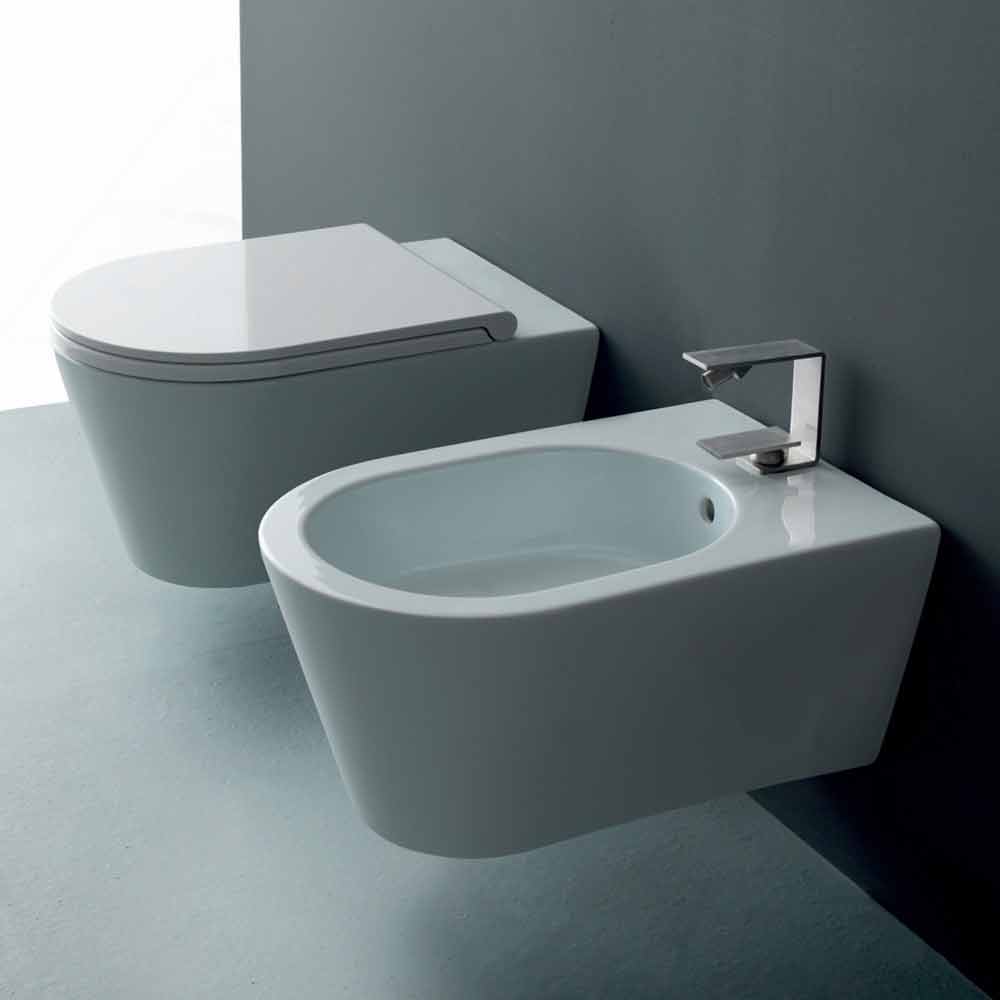Hängendes Bidet aus Keramik, Design Sun Round 57x37cm, made in Italy