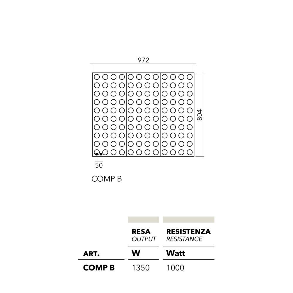 Das Produkt beinhaltet: - Heizbatterie - Abdeckung - Ventil und Rücklaufverschraubung nicht thermostatisierbar - Entlüftungsventil Wandmontage - In der Verbundversion wird ein Verbindungssatz zwischen den Modulen mitgeliefert