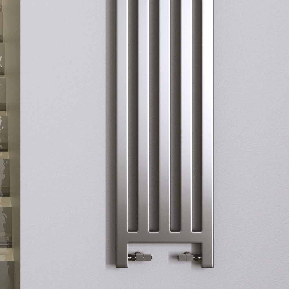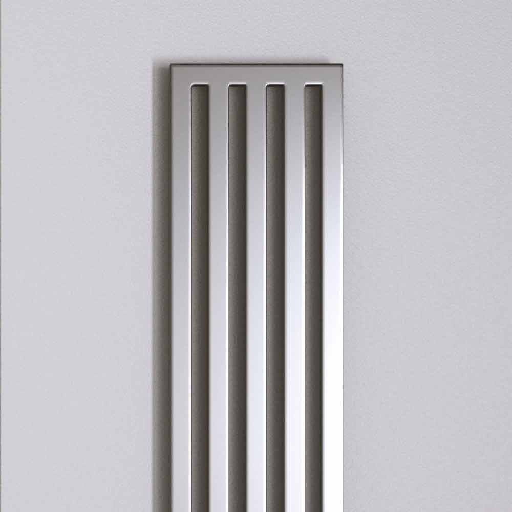 Vertikaler Heizkörper aus Chromstahl in der hydraulischen Ausführung. Materialmix zwischen Heizstruktur und Abdeckplatten in perfekter Balance zwischen Ästhetik, Funktionalität, Sorgfalt und Detailverliebtheit. Mit News Dress kleiden Sie die Umgebung, in der Sie leben.