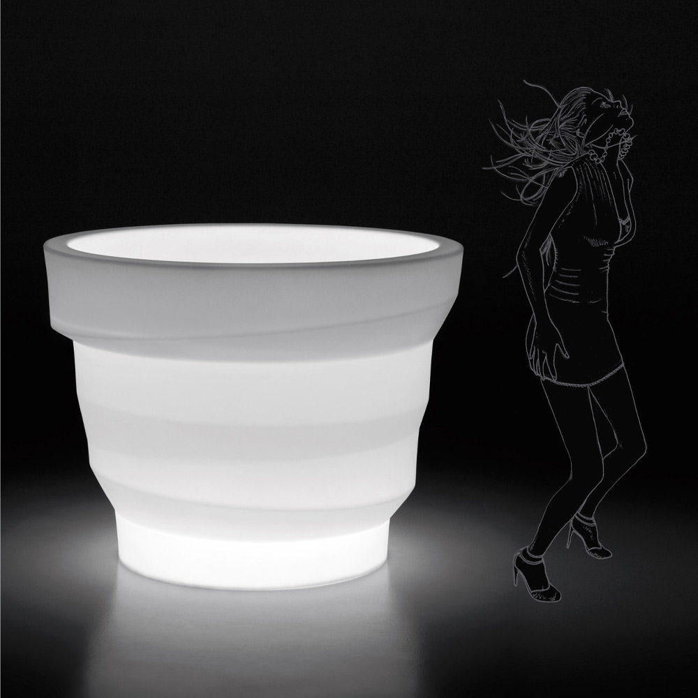 Leuchtende Außenvase aus undurchsichtigem Polyethylen mit LED made in Italy.