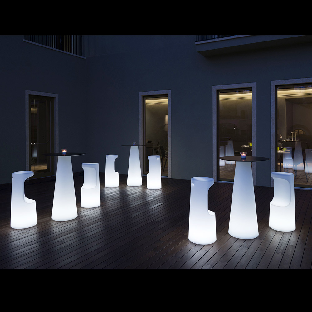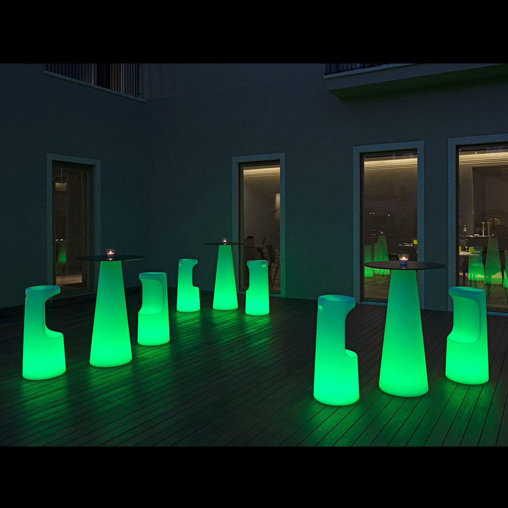 Outdoor-Designtisch aus HPL und Polyethylen mit RGB-LED-Licht Made in Italy.