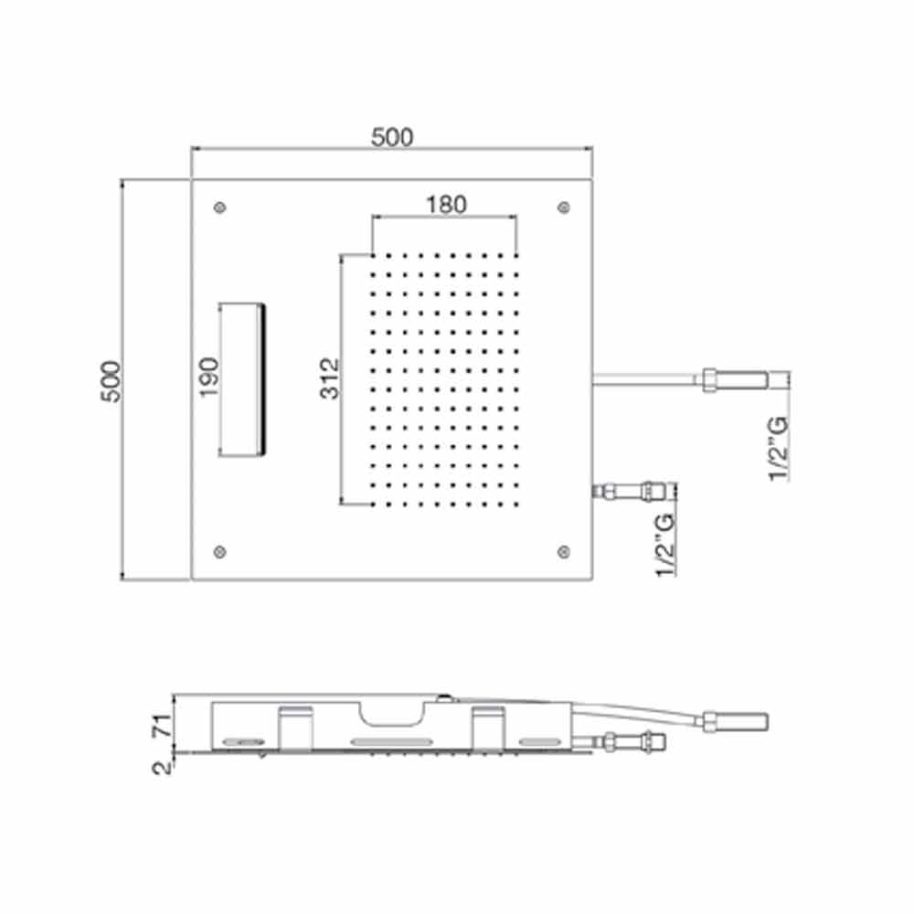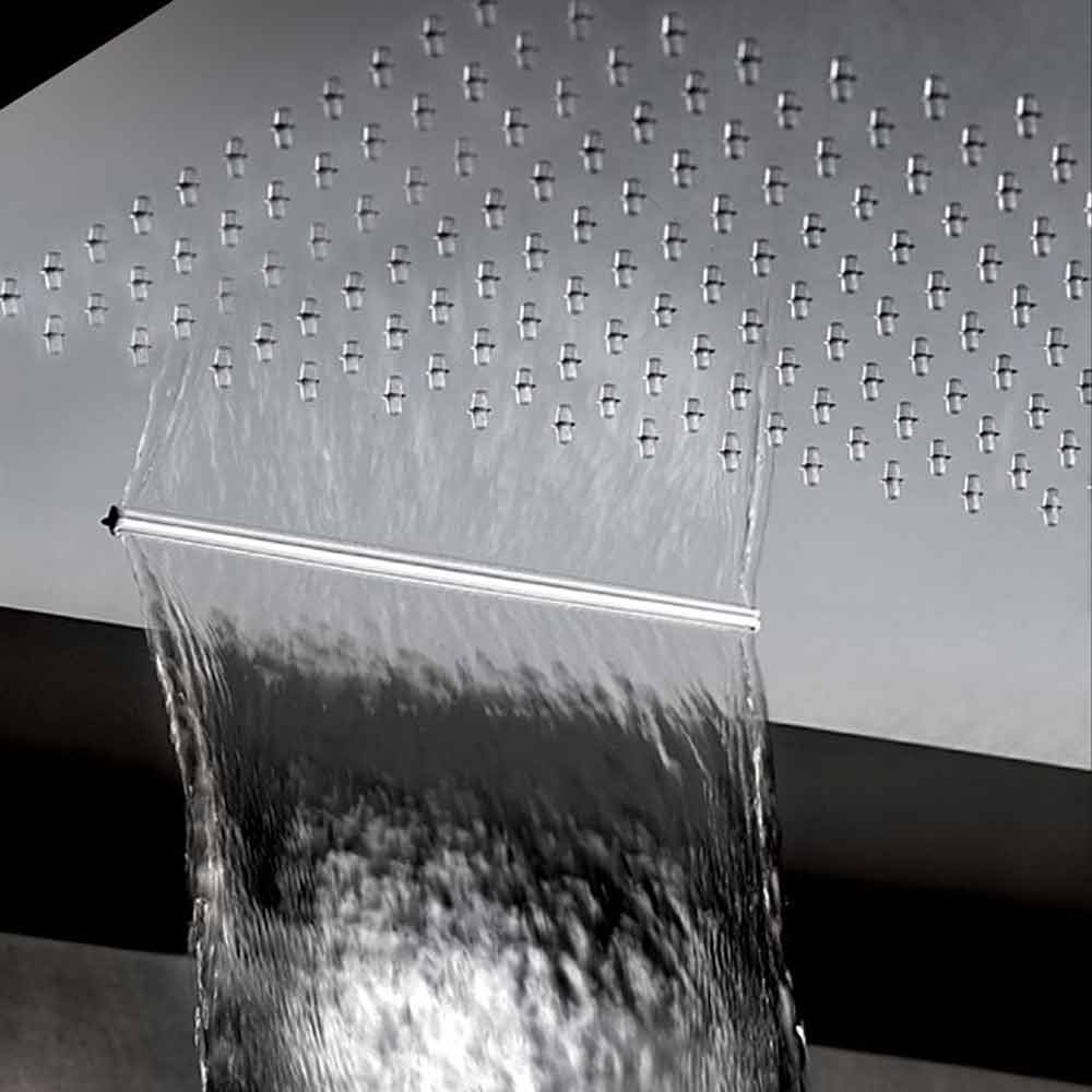 Moderner quadratischer Duschkopf aus Edelstahl mit Doppelstrahl, Qualitätsprodukt „Made in Italy“.