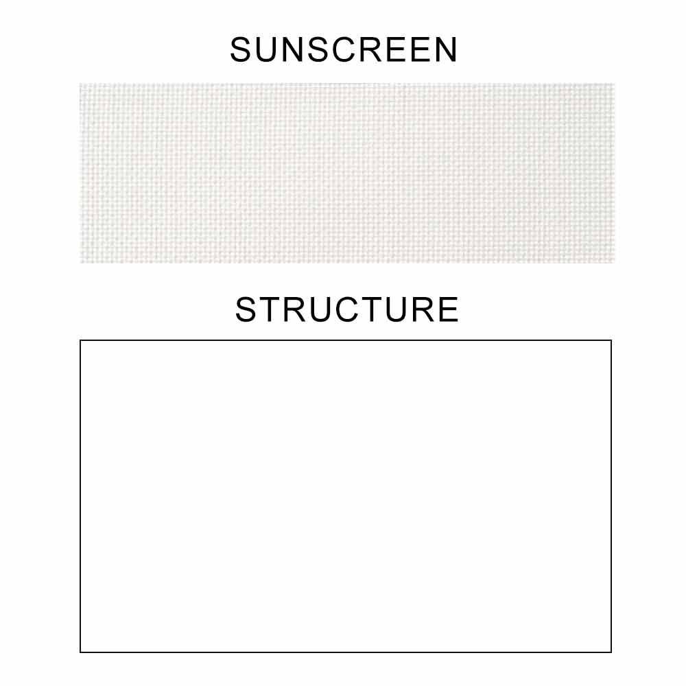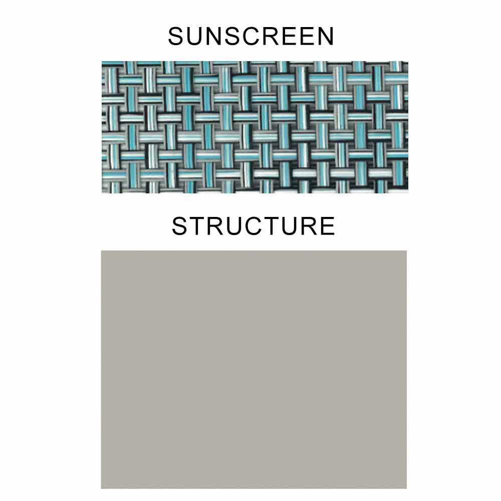 Stahl. Der für seine Realisierung verwendete Stoff hat Mikrolöcher, die die funktionelle Seite vergrößern, da sie den Luftdurchgang ermöglichen und gleichzeitig die Wirkung der Sonnenstrahlen blockieren, die an heißen Sommertagen störend sein können.