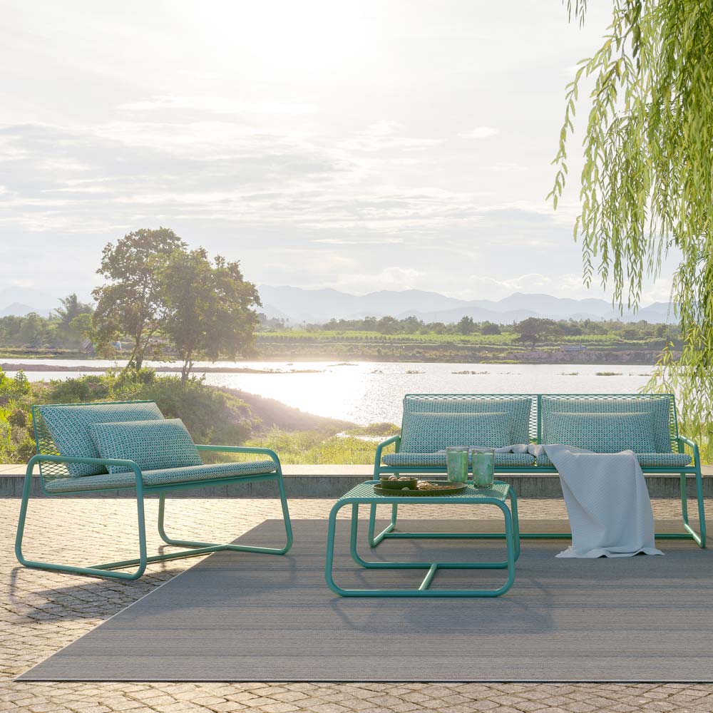 Dieser Couchtisch im Freien hat ein strenges Design mit einem ausgesprochen zeitgemäßen Geschmack, aber die solide und imposante Figur wird durch die abgerundeten Beine gemildert. Das Design ermöglicht es Ihnen, als Hocker, als Hocker zum Kombinieren mit einem Sessel für mehr Komfort oder als Couchtisch zu fungieren. Eine moderne Ergänzung, die sich durch ihre Qualität auszeichnet, die vollständig in Italien hergestellt wurde , und durch ihr nützliches, trendiges und nie banales Design, ihren Minimalismus ohne Exzesse und Kanten und durch präzise Liebe zum Detail.