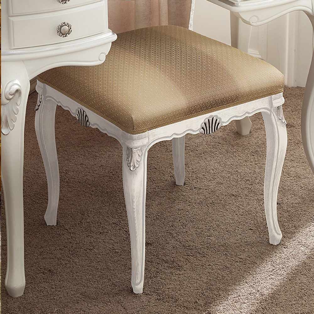 Hocker im klassischen Stil aus Holz, gepolstert und mit Stoff bezogen , erhältlich in Bassano-Nussbaum-Holzoberflächen mit antiken Golddetails oder weißen Holz- und Silberdetails. Eine einzigartige und raffinierte Ergänzung, die vollständig in Italien von erfahrenen Handwerksmeistern hergestellt wird, Meister der Kunst, die jede Ergänzung mit Weisheit und Geschmack für Eleganz vervollständigen. Die Produktion erfolgt unter Verwendung hochwertiger Materialien und mit der größten Sorgfalt und Professionalität, die die Produkte Made in Italyauszeichnet .