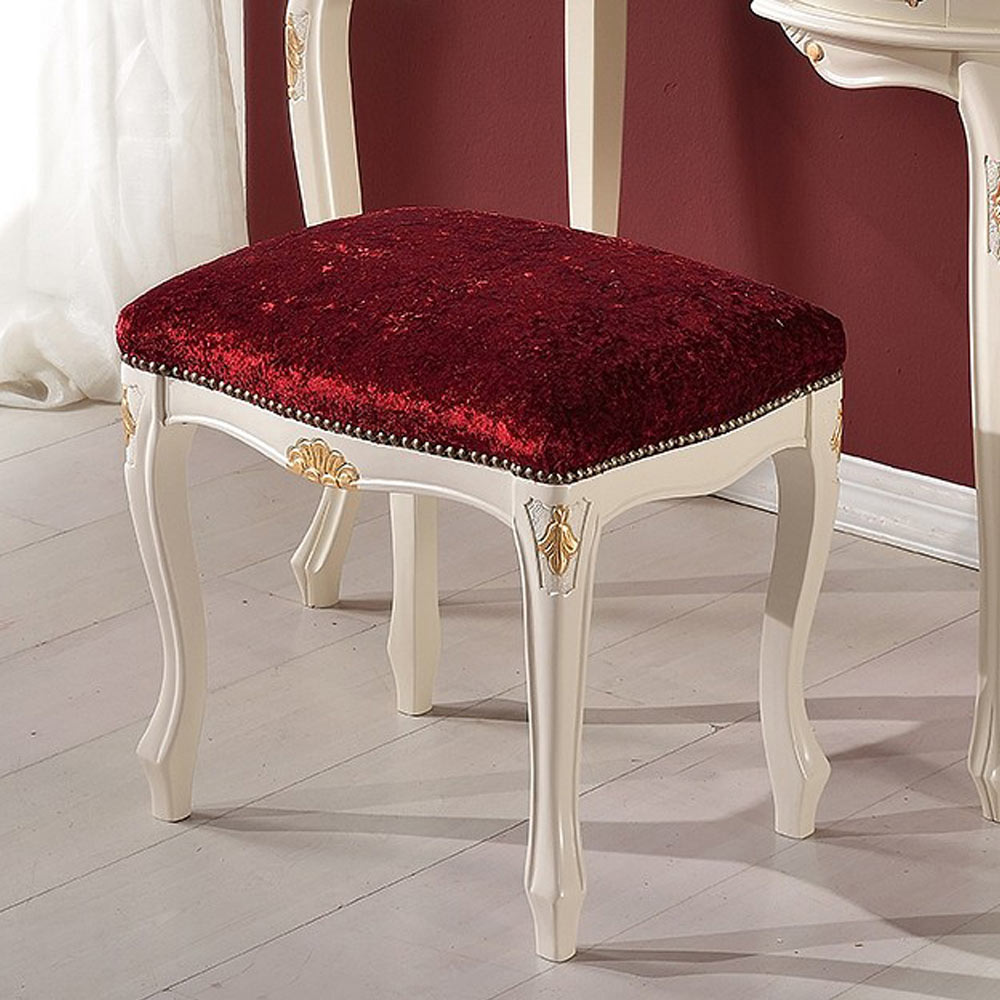 Hocker im klassischen Stil aus Edelholz in Nussbaum oder Weiß und Stoffpolsterung. Der gesamte Stil und die Handwerkskunst , die die Verarbeitung auszeichnen, kommen in diesem prächtigen Möbelstück zum Vorschein und machen es zu einer raffinierten Ergänzung, die in der Lage ist, die Umgebung, in der es aufgestellt wird, zu verschönern. Vollständig in Italien hergestellt und von erfahrenen Handwerksmeistern handgefertigt, vollendet mit Weisheit und Geschmack für Eleganz. Die Produktion erfolgt unter Verwendung hochwertiger Materialien und mit der größten Sorgfalt und Professionalität, die die Produkte Made in Italyauszeichnet .