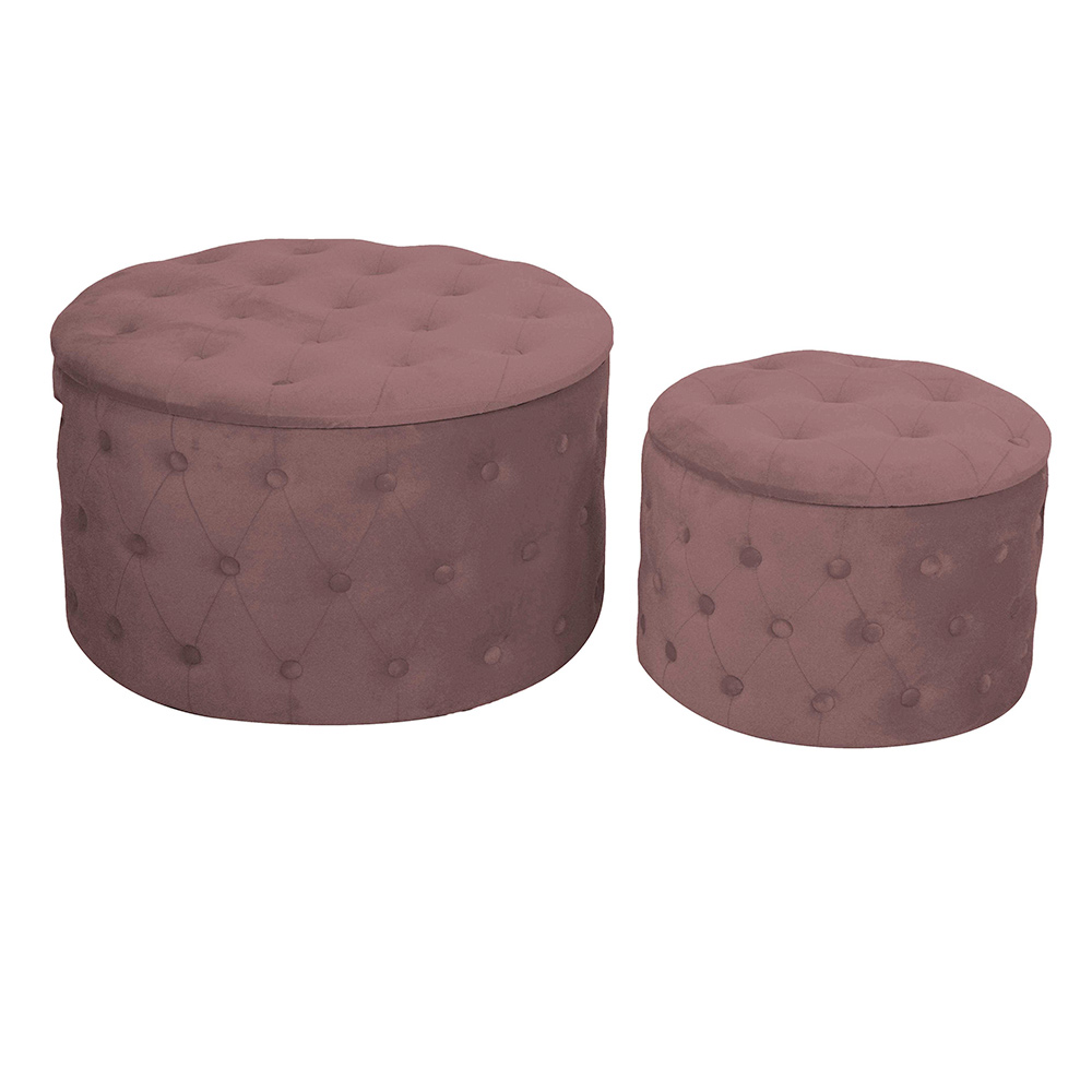 Dieses Set von Aufbewahrungshockern ist die perfekte Ergänzung, um Eleganz und Funktionalität in jedem Raum des Hauses zu kombinieren. Mit einem raffinierten Samtbezug überzogen, zeichnen sich diese Hocker durch ihr geknöpftes Capitoné Design aus, das Ihrem Wohnzimmer, Schlafzimmer oder Eingangsbereich einen Hauch von Klasse und Sophistication verleiht.