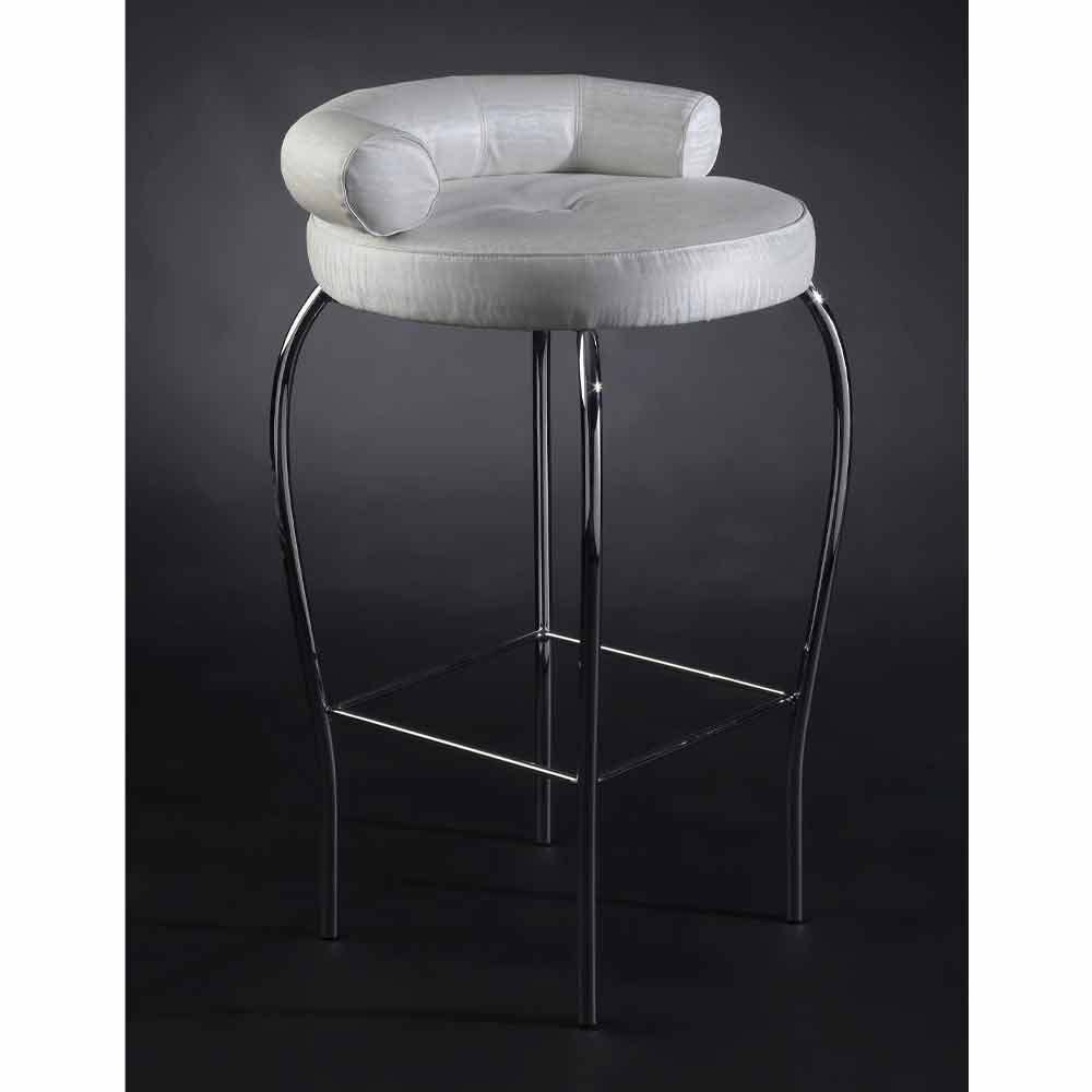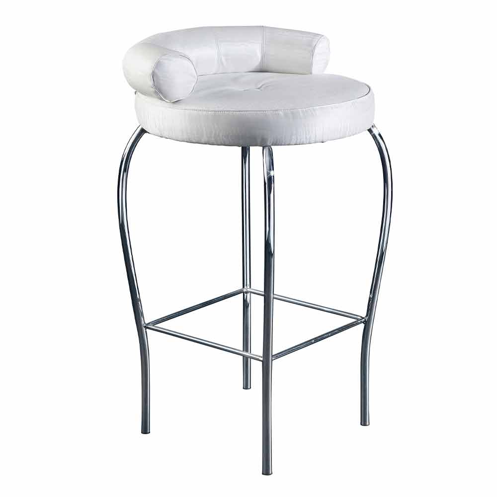 Hoher Hocker aus Stahl mit Sitz aus edlem Stoff Made in Italy.