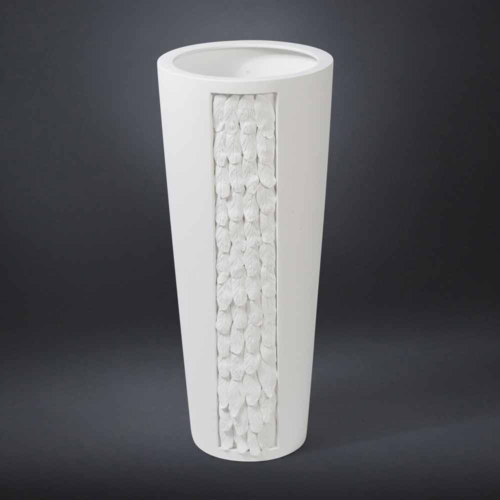 Hohe Vase für Innenräume, hergestellt in Italien aus undurchsichtiger weißer Keramik in einem handwerklichen Verfahren . Eine Ästhetik, die von essentiellen Formen unterstrichen wird, bereichert durch ein elegantes Detail mit einer Blattstruktur, die einen Teil der Struktur der Vase bedeckt. Dieses Detail zusammen mit der ausgewählten raffinierten Ausführung verleihen dieser Ergänzung ihre ganze Persönlichkeit und machen sie zu einer perfekten Lösung für Räume, die sich durch einen klassischen Stil auszeichnen. Die Verwendung von Keramik und Handwerkskunst machen es zu einem exklusiven und raffinierten Dekorationselement, das seinen Wert erhöht und seine Qualität unterstreicht. Eine ideale Ästhetik für die unterschiedlichsten Umgebungen, von der Wohnungseinrichtung bis hin zu Hotels, Restaurants, Objektbereichen, Spas, aber auch als Rahmen für Veranstaltungen und Hochzeiten.