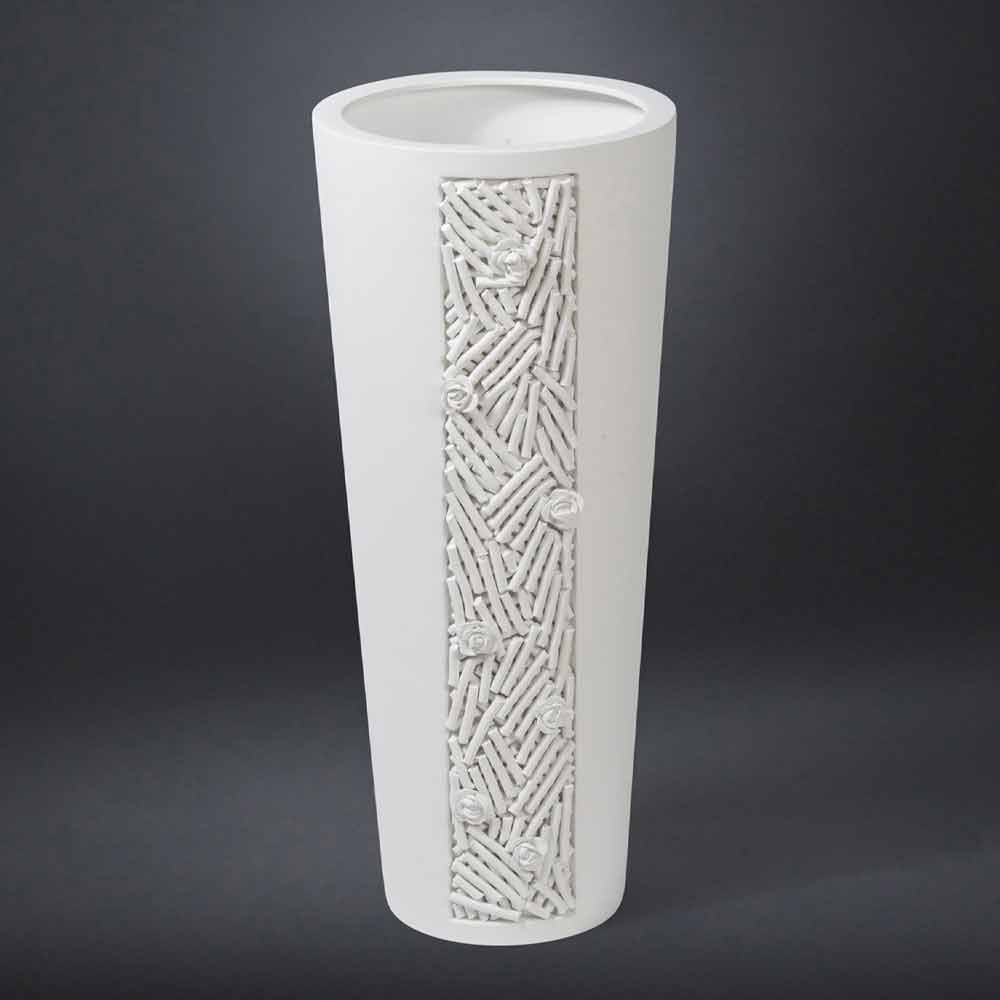 Hohe Indoor-Vase aus weißer Keramik mit Dekoration Made in Italy - Calisto