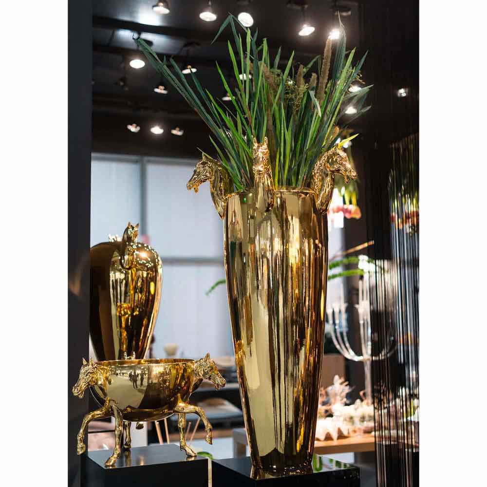Dekorative Keramikvase für den Innenbereich, handgefertigt in Italien von Handwerkern, die seit Generationen Experten auf dem Sektor sind. Eine Ergänzung mit einer essentiellen und eleganten Ästhetik, die durch die originalen pferdeförmigen Details im oberen Teil der Vase bereichert und einzigartig wird, die ihre kreative Seele unterstreichen und sie zu einer perfekten Lösung sowohl für klassische Umgebungen als auch für modernere Räume machen, in denen er schafft ein wunderbares Spiel der Kontraste zwischen verschiedenen Stilen. Die handwerkliche Produktion erhöht ihren Wert und Wert, um ein exklusives und qualitativ hochwertiges Ergebnis zum Leben zu erwecken. Ein ideales Design für die unterschiedlichsten Umgebungen, von der Wohnungseinrichtung bis hin zu Hotels, Restaurants, Objektbereichen, Spas, aber auch als Rahmen für Veranstaltungen und Hochzeiten.