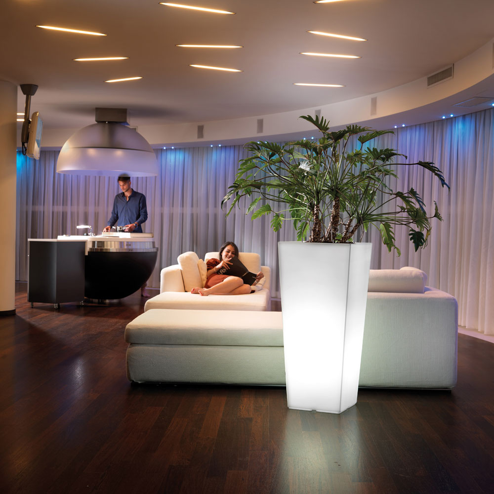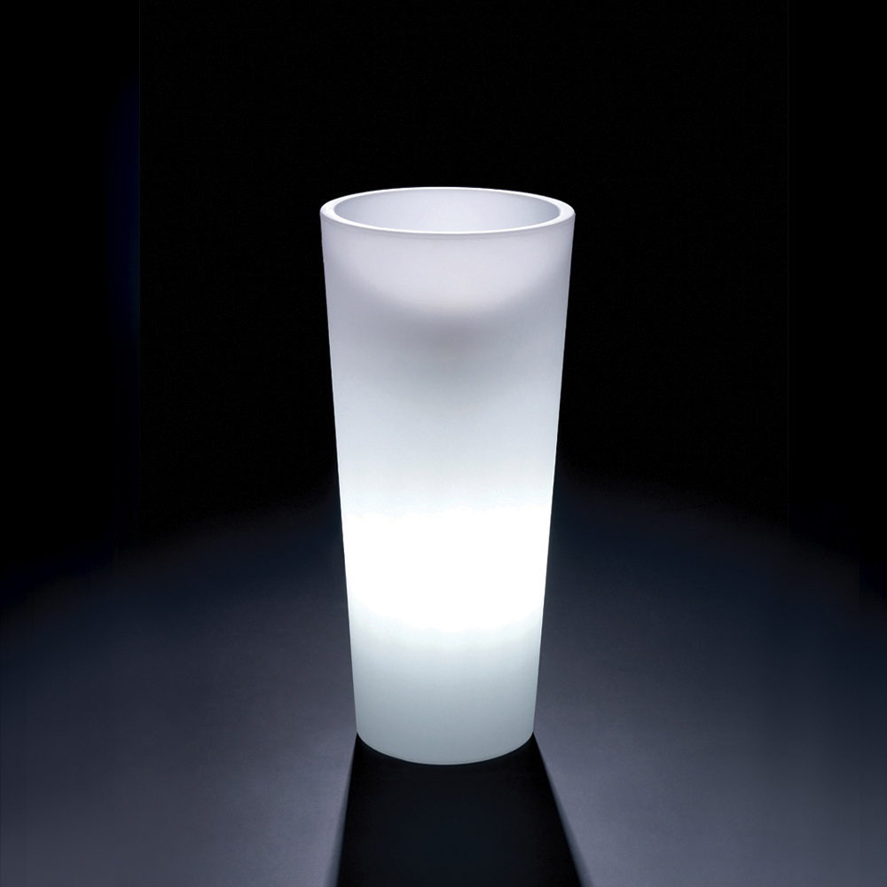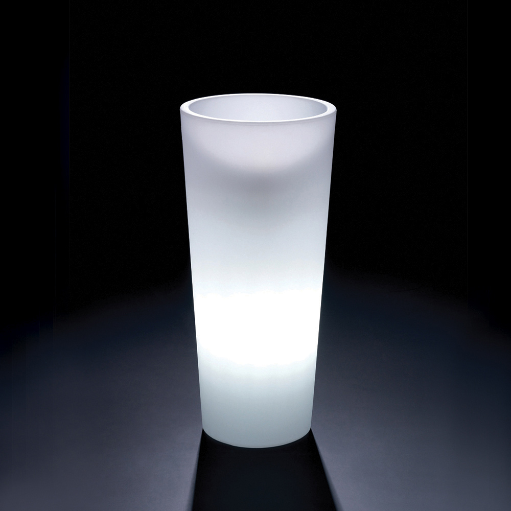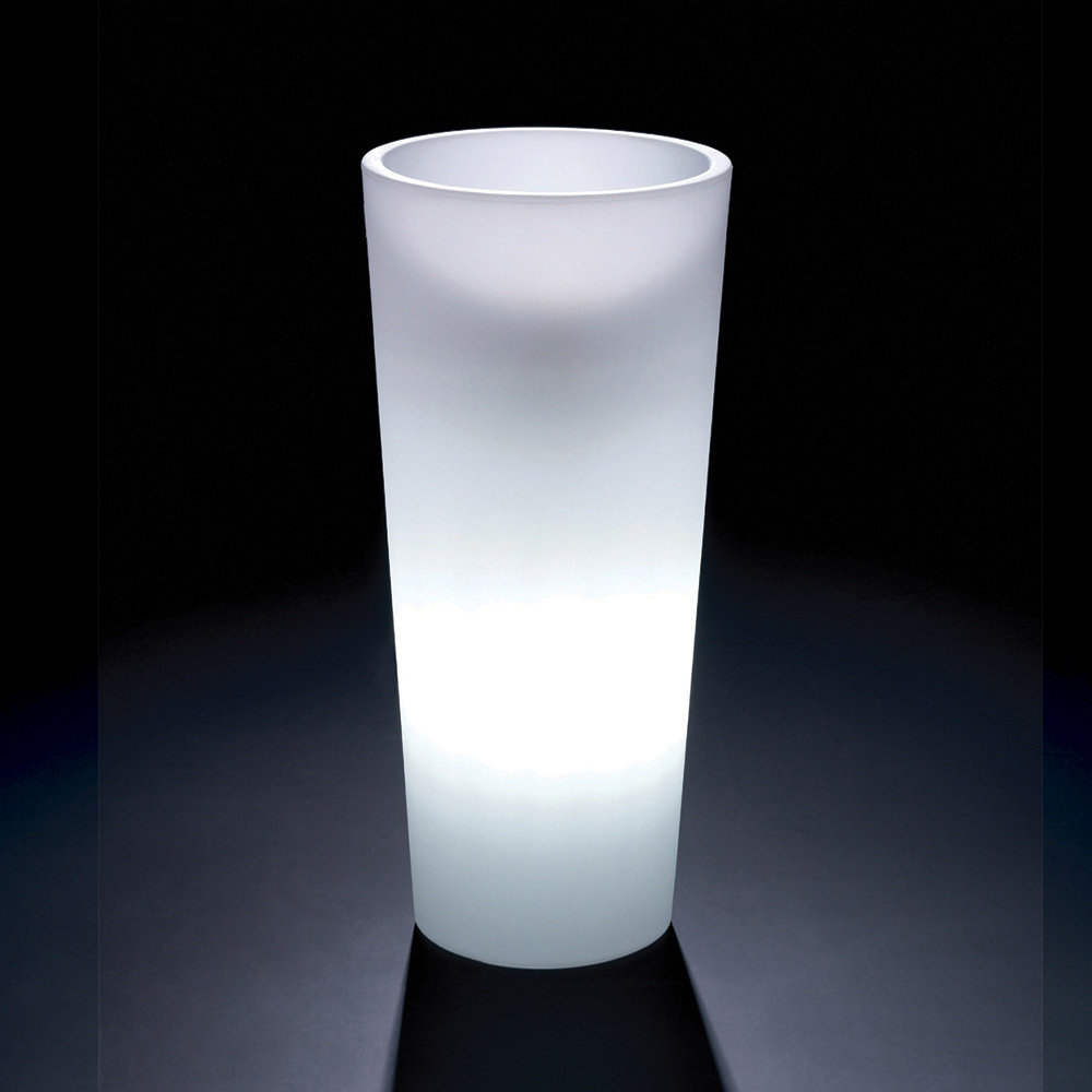 Diese in Italien hergestellte leuchtende Vase für den Innenbereich aus Polyethylen ist in verschiedenen Größen erhältlich, um den Stil Ihres Wohnraums mit extravagantem Charakter zu bereichern und zu revolutionieren. Die entschiedenen und essentiellen Linien verleihen diesem in verschiedenen Formen und Größen erhältlichen Einrichtungsgegenstand einen klassischen Eindruck, ohne jedoch seine Eleganz und Funktionalität zu beeinträchtigen.