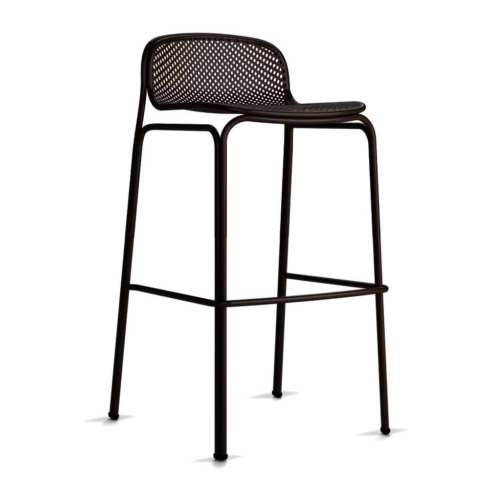 Stapelbarer Außenhocker aus lackiertem Metall mit Rückenlehne, Made in Italy, 2 Stück.
