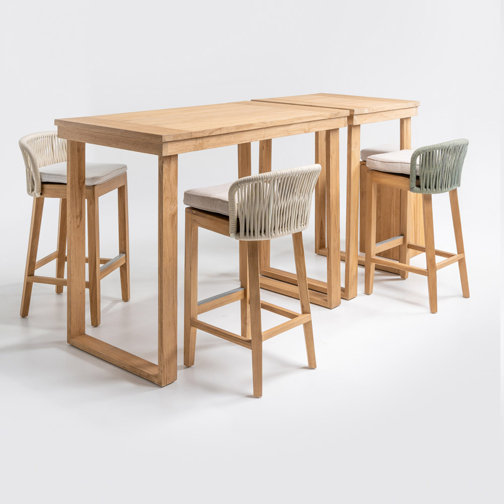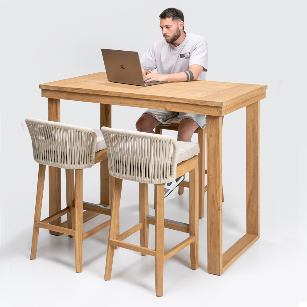 Hoher Bartisch aus gebürstetem, natürlichem Teakholz - Sponda