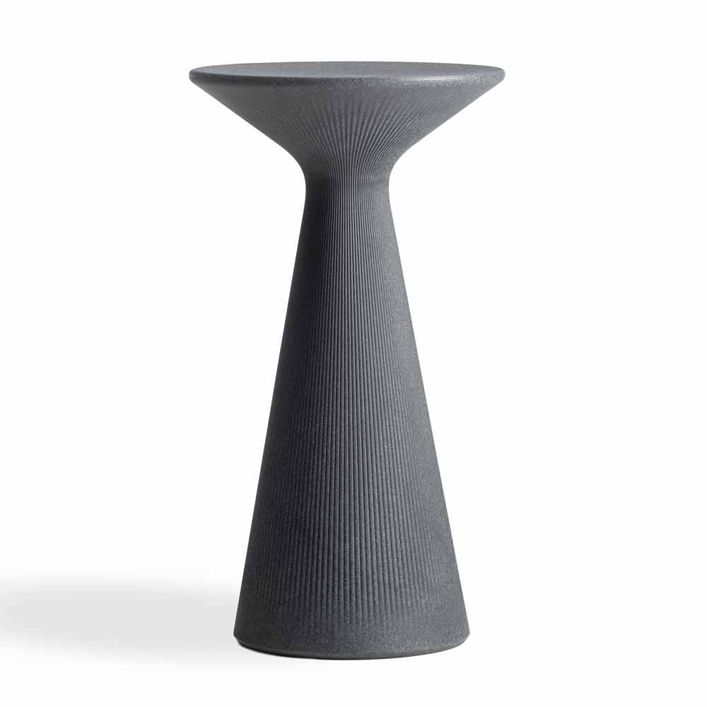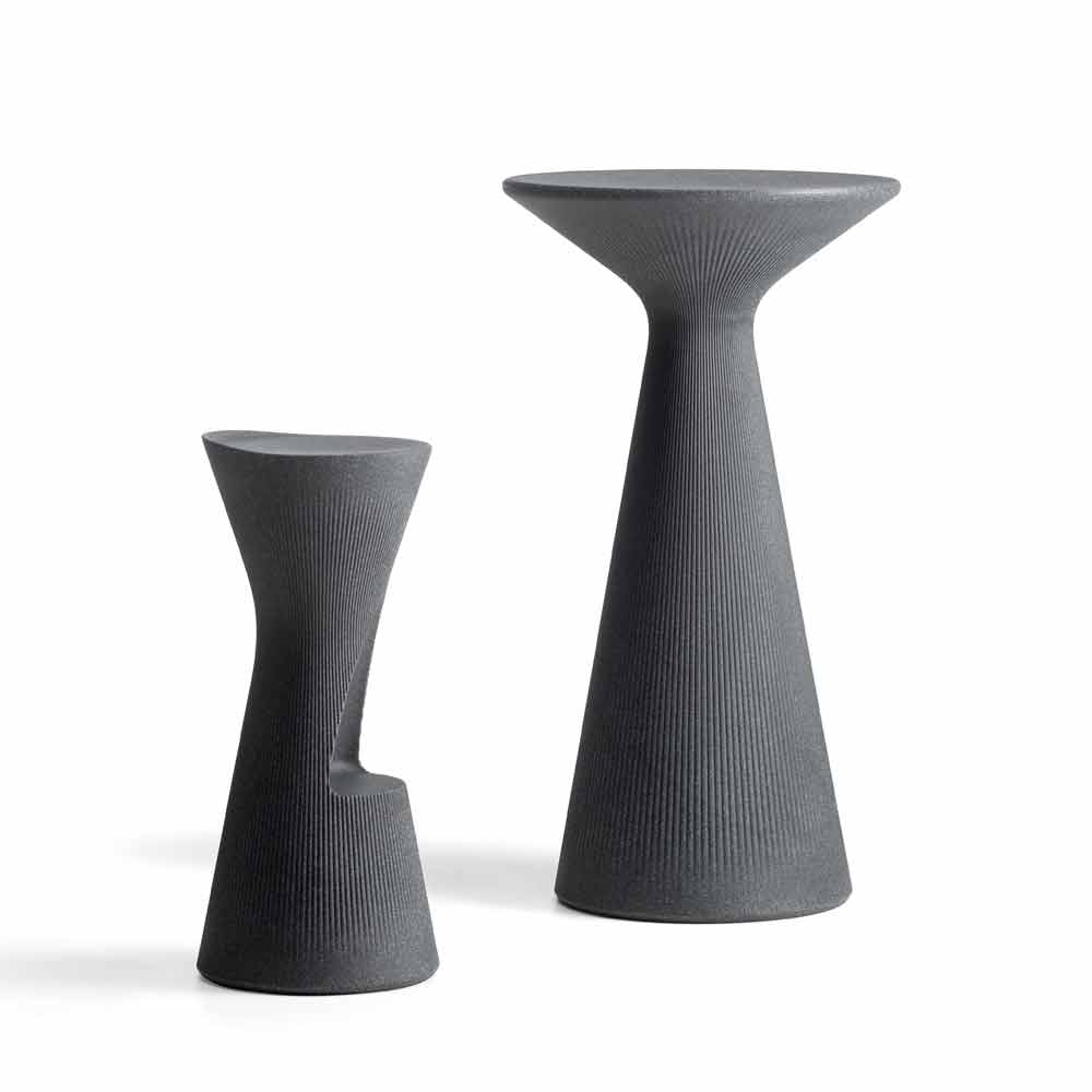 Couchtisch imFreien mit runder Plattehergestellt in Italienaus farbigem Polyethylen, das sich durch wundervolle Oberflächen auszeichnet, die an natürliche Materialien erinnern. Seine Struktur zeichnet sich durch ein äußerst einfaches und lineares Design aus und ist dank der verwendeten hochwertigen Materialien äußerst stabil. Dies macht es zu einer perfekten Lösung für Außenumgebungen, in denen Sie nach einem Möbelstück suchen, das Funktionalität und Design in Einklang bringt. Die besondere gestreifte Oberfläche, die die gesamte Basis bedeckt, erhöht auch ihre Einzigartigkeit und ästhetische Seite und ermöglicht gleichzeitig die Erzeugung wundervoller Lichtspiele.
