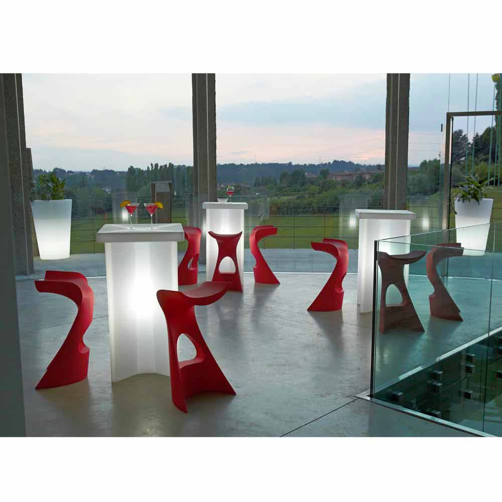 Slide Koncord moderner farbiger Hocker, hergestellt in Italien Koncord ist ein hoher Hocker mit einem ganz besonderen Design und dynamischen Linien. Die Formen dieses Möbelstücks machen es ideal, um Orte wie Bars, Terrassen, aber auch Wohnzimmer oder Gärten auf spektakuläre Weise zu dekorieren. Ein Hauch von Made in Italy, der nicht unbemerkt bleibt und maximalen Komfort garantiert.