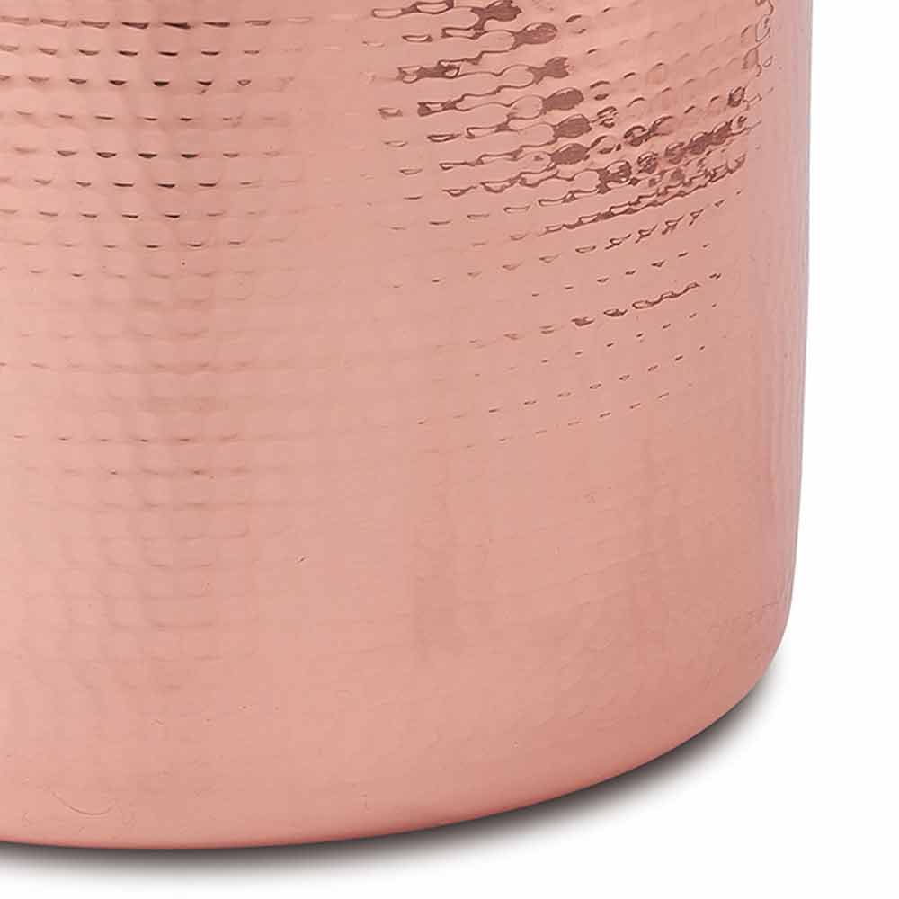 Hoher Topf mit Griffen und Deckel, handgefertigt aus gehämmertem Kupfer made in Italy.