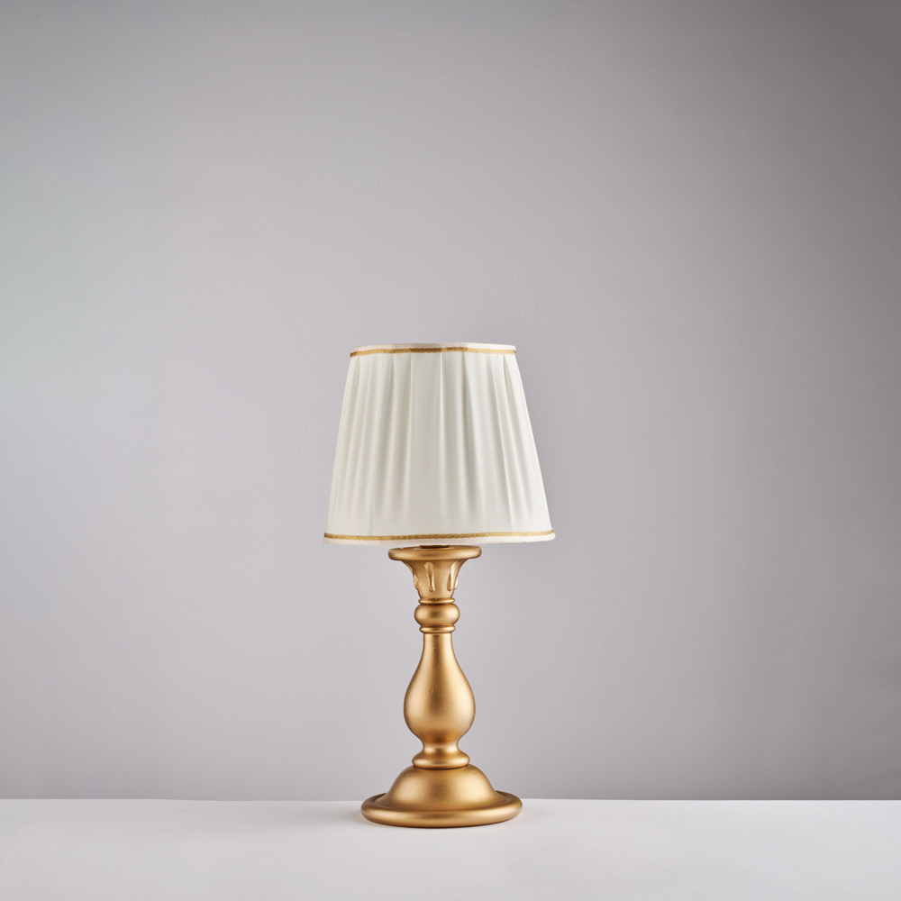 Elegant und zeitlos vereinen diese handgefertigten Holzlampen Tradition und dekorative Raffinesse. Der gedrechselte Fuß mit seinen harmonischen, klassischen Linien wird von einem Stofflampenschirm ergänzt, der ein sanftes, einladendes Licht verbreitet und so eine warme, behagliche Atmosphäre schafft.