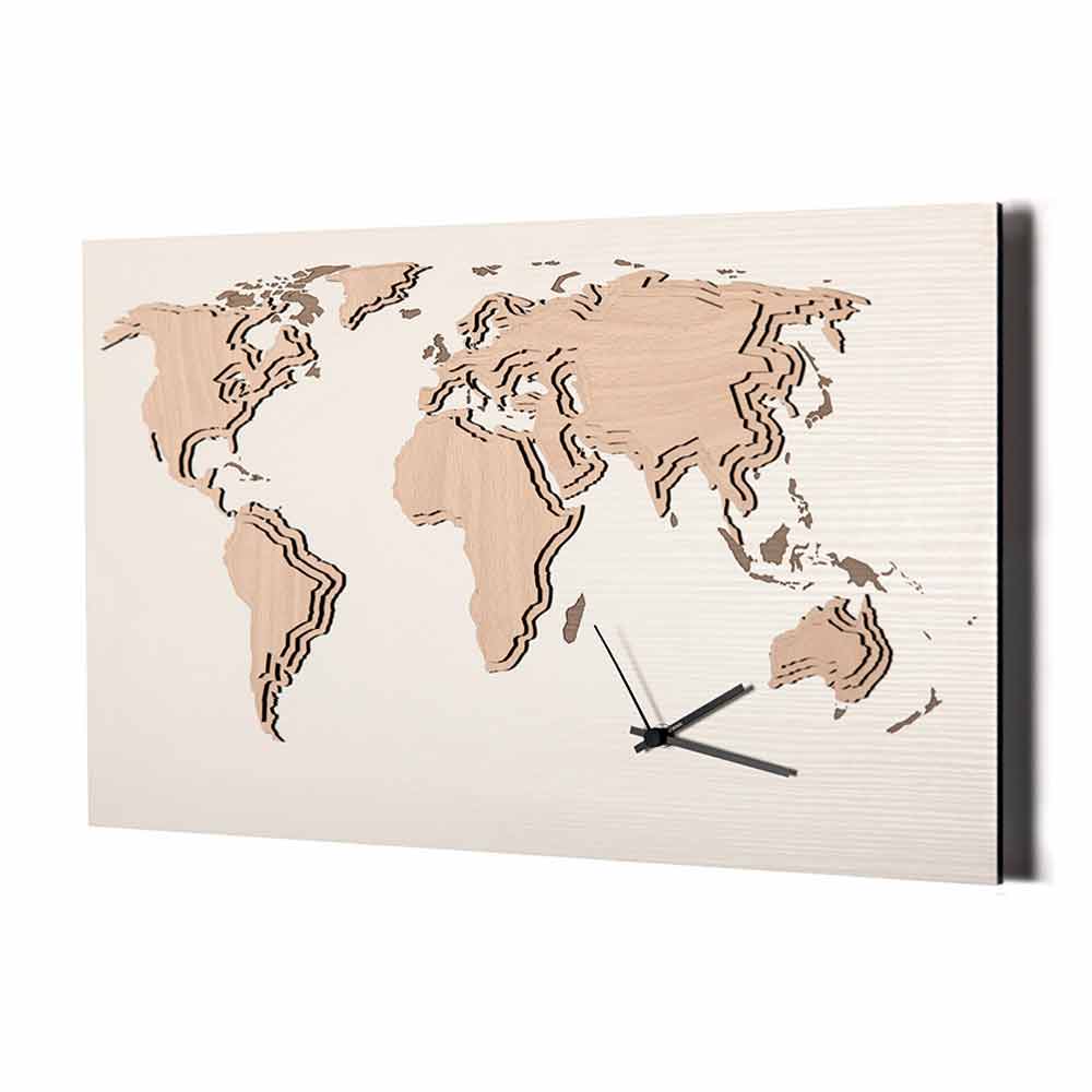 Für Reiseliebhaber und Fans von Sightseeing und Erkundung ist diese Wanduhr ideal. AusEschenholz mit geschnitzten Naturholz - Laser entwickelt, stellt die Ergänzung die Karte der Welt auf verschiedene Ebenen in elegant, natürlich.