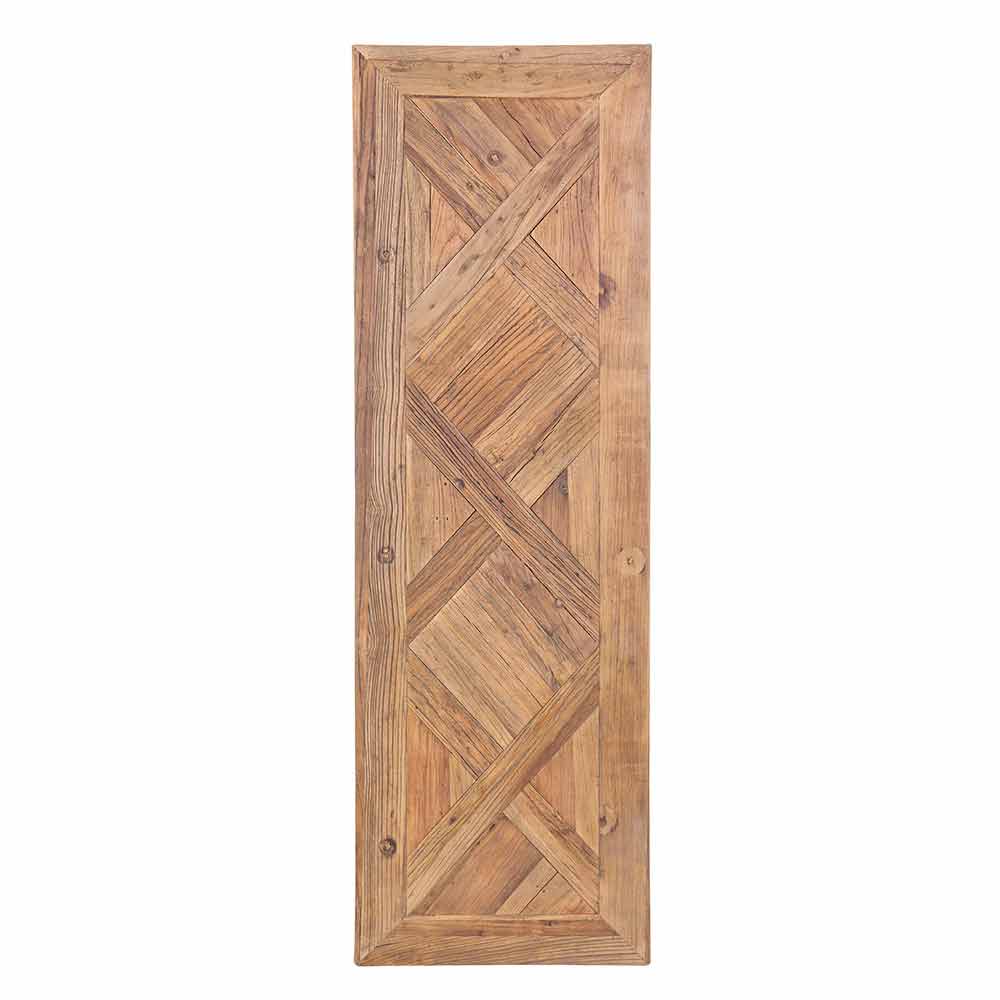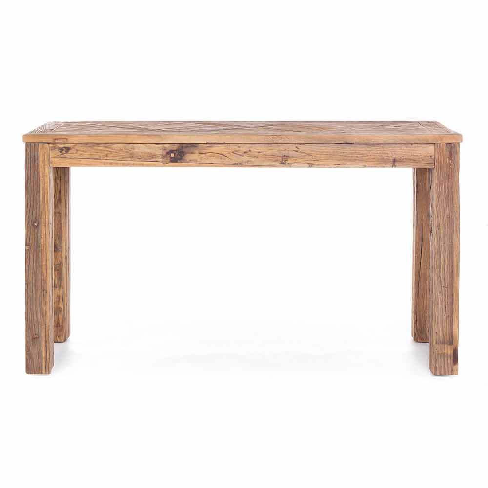 Diese Designkonsole besteht vollständig aus recyceltem Ulmenholz. Die Oberseite ist mit einem gealterten Parkett-Finish und einem Nitrocellulose-Finish verziert.