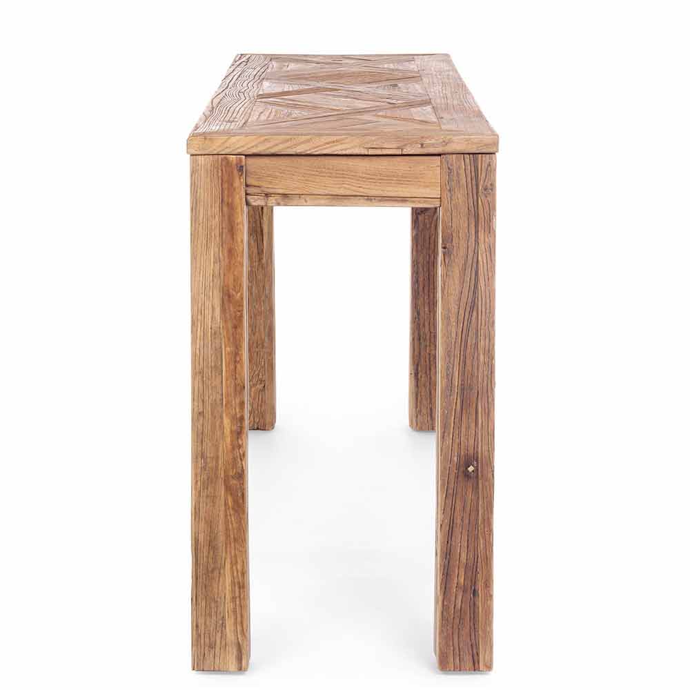 Luxus-Designkonsole aus recyceltem Ulmenholz mit Verarbeitung auf der Oberseite.