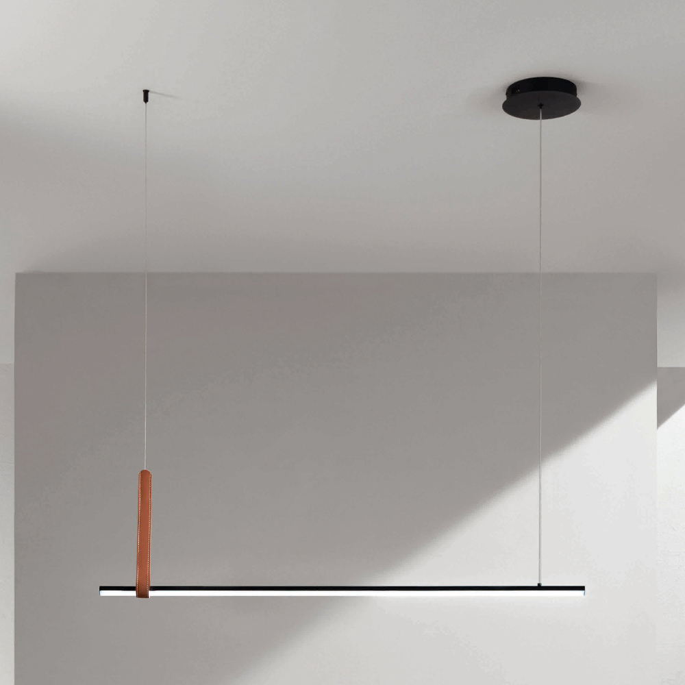 Komplett in Italien hergestellteHängeleuchte aus schwarz lackiertem Metall und Element auslederfarbenem Kunstleder mit längenverstellbaren Kabeln und dimmbarem LED-Licht. Ziel dieses Produkts ist es, die Tradition durch einen zeitgenössischen Ansatz aufzuwerten, bei dem Stil, Klasse und Innovation zu neuen Designformeln verschmelzen, um jede Umgebung mit Geschmack und Charakter einzurichten und zu beleuchten. Stärken sind die Besonderheit der Formen , die Qualität der Materialien und die Einzigartigkeit der Lichtquelle .