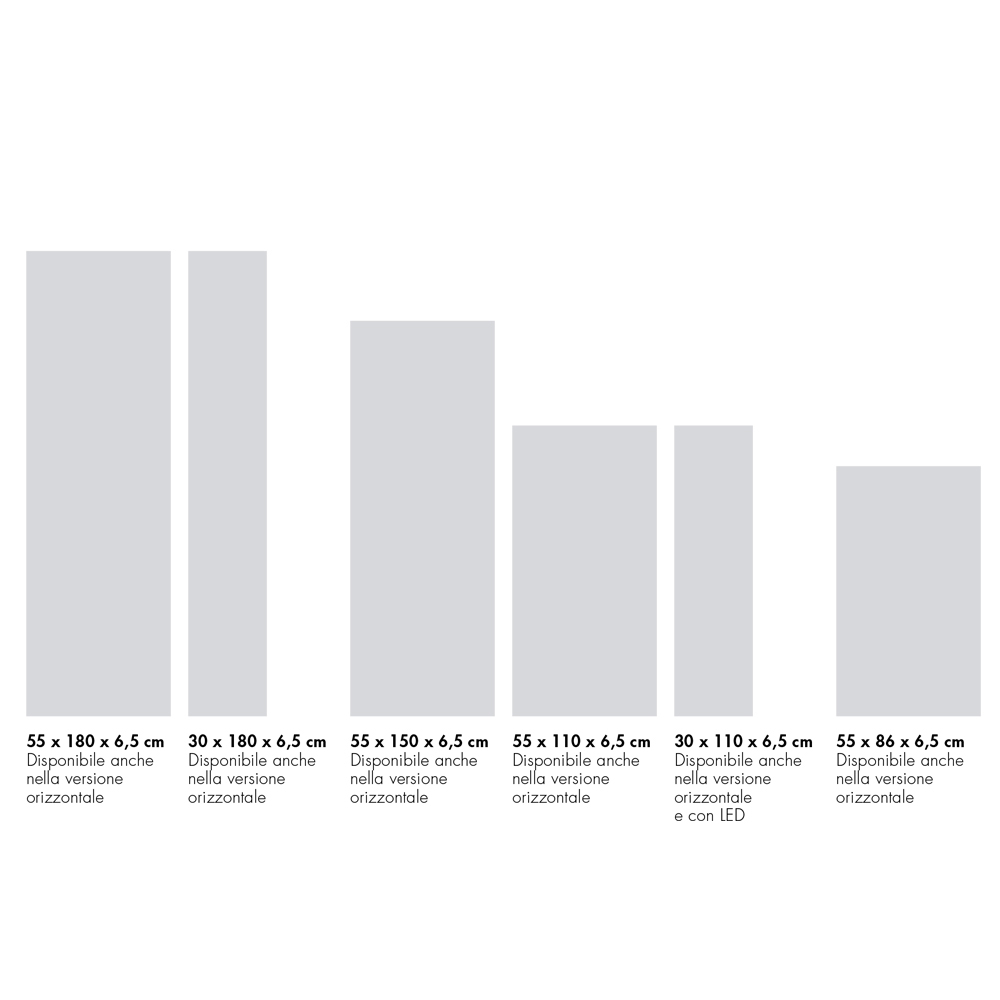 Dieses Möbelstück ist in 6 verschiedenen Größen erhältlich und eignet sich dazu, den Stil jeder Umgebung mit Design und Funktionalität zu vervollständigen. Es garantiert hohe Widerstandsfähigkeit , einfache Montage und Flexibilität bei der Einrichtung , da es in vertikalen und horizontalen Versionen mit 3 Technologietypen (elektrisch, hydronisch und hybrid) und einer breiten Palette verschiedener Farbkombinationen erhältlich ist.