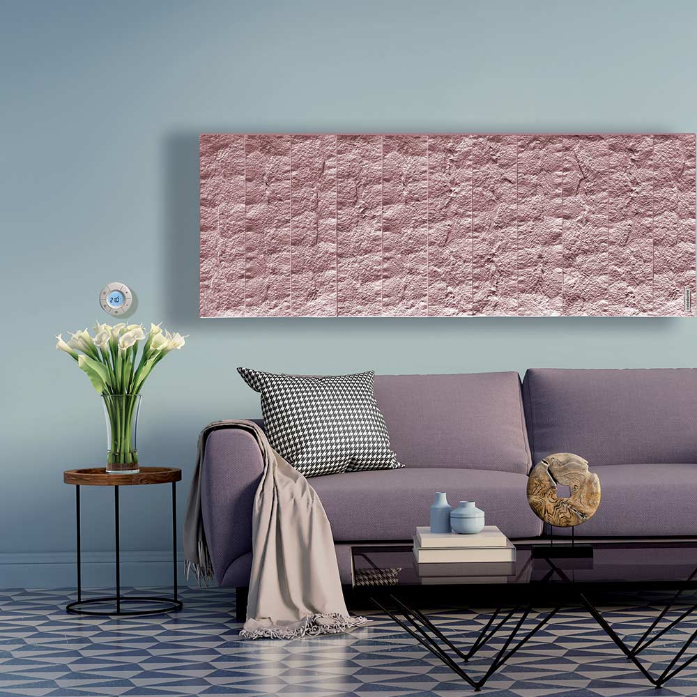 Dieser Hybridheizkörper aus aus Marmorpulver kombiniert die beiden elektrischen und hydraulischen Systeme und zeigt eine unregelmäßige Oberfläche , die einen rustikalen, aber modernen Effekt verstärkt. Eine vollständig in Italien hergestellte Produktion, die Design, Funktionalität und Technologie vereint, um ein Erlebnis einladenden Wohlbefindens zu fördern, das durch den drahtlosen Magnetthermostat , der die erreichte Temperatur reguliert und so den Energieverbrauch senkt, noch weiter unterstrichen wird.