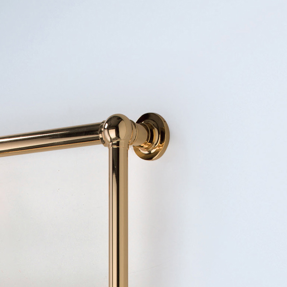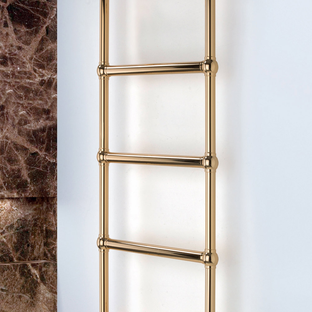Hydraulischer Handtuchwärmer aus Messing mitGoldfinish , bestehend aus Elementen mit 1,6 cm Durchmesser und Verbindungskugeln, vollständig in Italien hergestellt, inklusive Wandmontagesatz, Entlüftungsventil und Blindkappe . Dieser Heizkörper ist viel mehr als eine einfache Wärmequelle, er ist ein echtes Möbelstück, das die Umgebung, in der er aufgestellt wird, personalisieren und vervollständigen kann. Design und Funktionalität vereinen sich zu einem einzigartigen Produkt , das nicht nur schön, sondern auch benutzerfreundlich und effizient ist und die Qualität eines vollständig in Italien hergestellten Heizkörpers bietet.