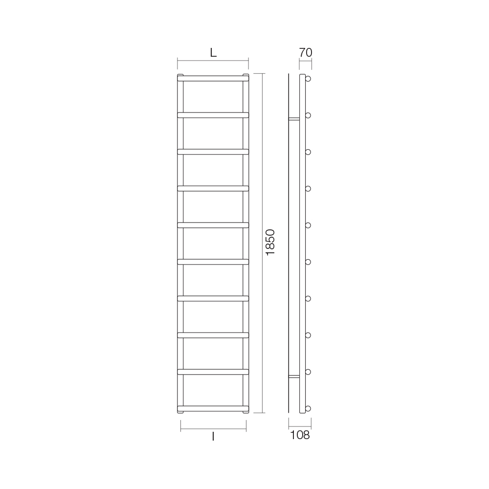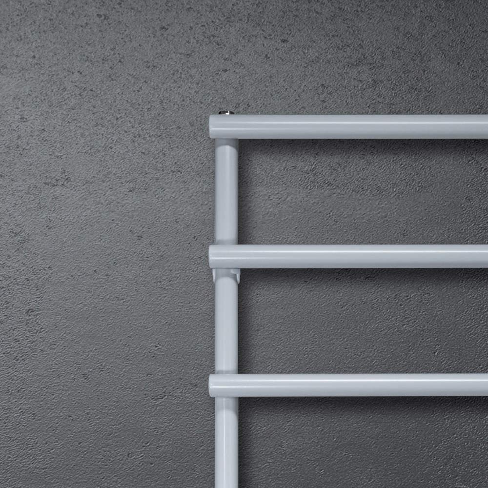 Hydraulischer Handtuchwärmer aus Kohlenstoffstahl mithellgrauer Oberfläche , bestehend aus einer Reihe horizontaler Elemente mit einem Durchmesser von 3,5 cm, die an vertikale Verteiler mit einem Durchmesser von 3,5 cm geschweißt sind. Komplett in Italien hergestellt, inklusive Wandbefestigungsset, Entlüftungsventil und Blindstopfen . Produktion, Forschung, Design und Entwicklung sind das Ergebnis der fachmännischen Arbeit einer Fabrik in Treviso, nur wenige Kilometer von Venedig entfernt, die die Qualität eines vollständig in Italien hergestellten Produkts garantiert. Die angestrebte Qualität ist ein Synonym für höchste Liebe zum Detail und die Verwendung der zuverlässigsten Materialien .