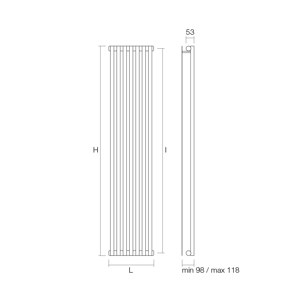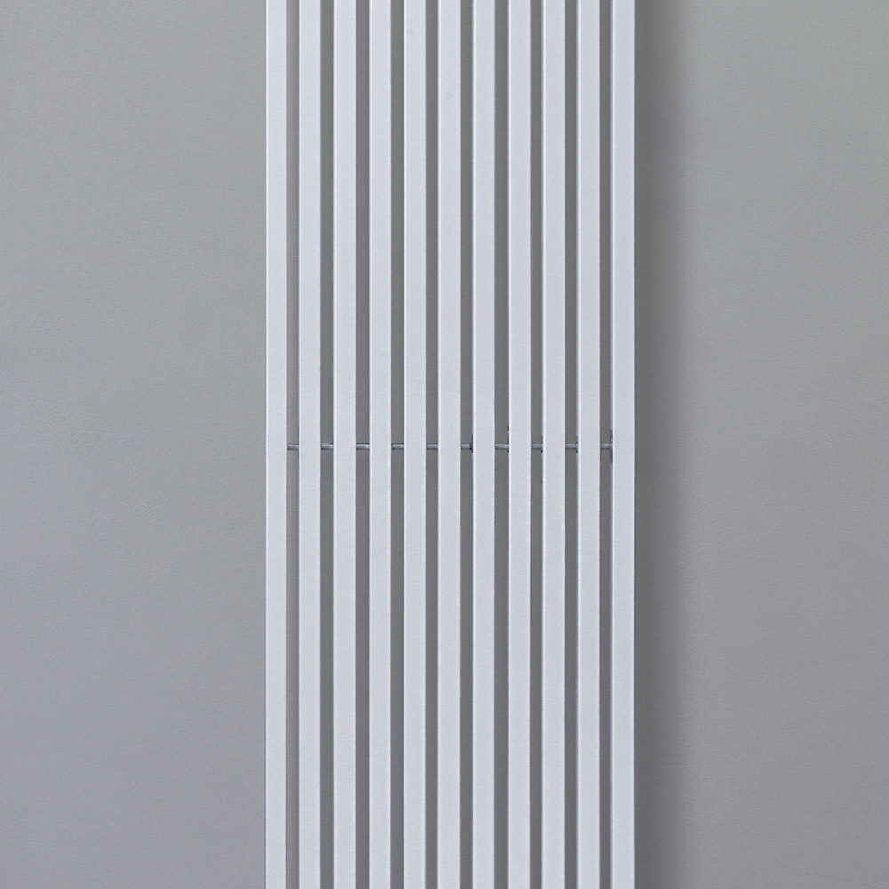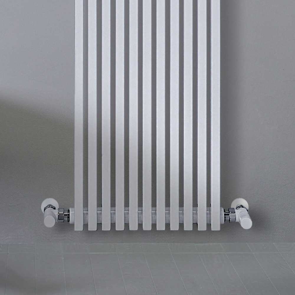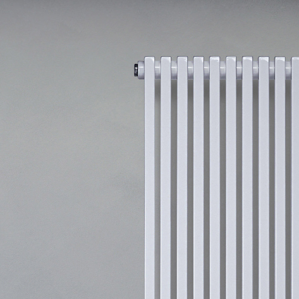 Hydraulischer Heizkörper aus Kohlenstoffstahl mit verkehrsweißer Oberfläche, bestehend aus einer Reihe vertikaler Elemente mit einem quadratischen Querschnitt von 2 cm, die an horizontale Verteiler mit einem Durchmesser von 3,5 cm geschweißt sind. Komplett in Italien hergestellt, inklusive Wandbefestigungsset, Entlüftungsventil und Blindstopfen . Ein auf Qualität, Innovation und Fertigungsqualität ausgerichteter Entwicklungspfad hat den Grundstein für die Schaffung dieses Produkts gelegt, das Spitzentechnologie und italienische Handwerkskunst vereint. Dieses Element vervollständigt und personalisiert jede Umgebung und erfüllt die Bedürfnisse und Wünsche immer aufmerksamerer und anspruchsvollerer Benutzer.