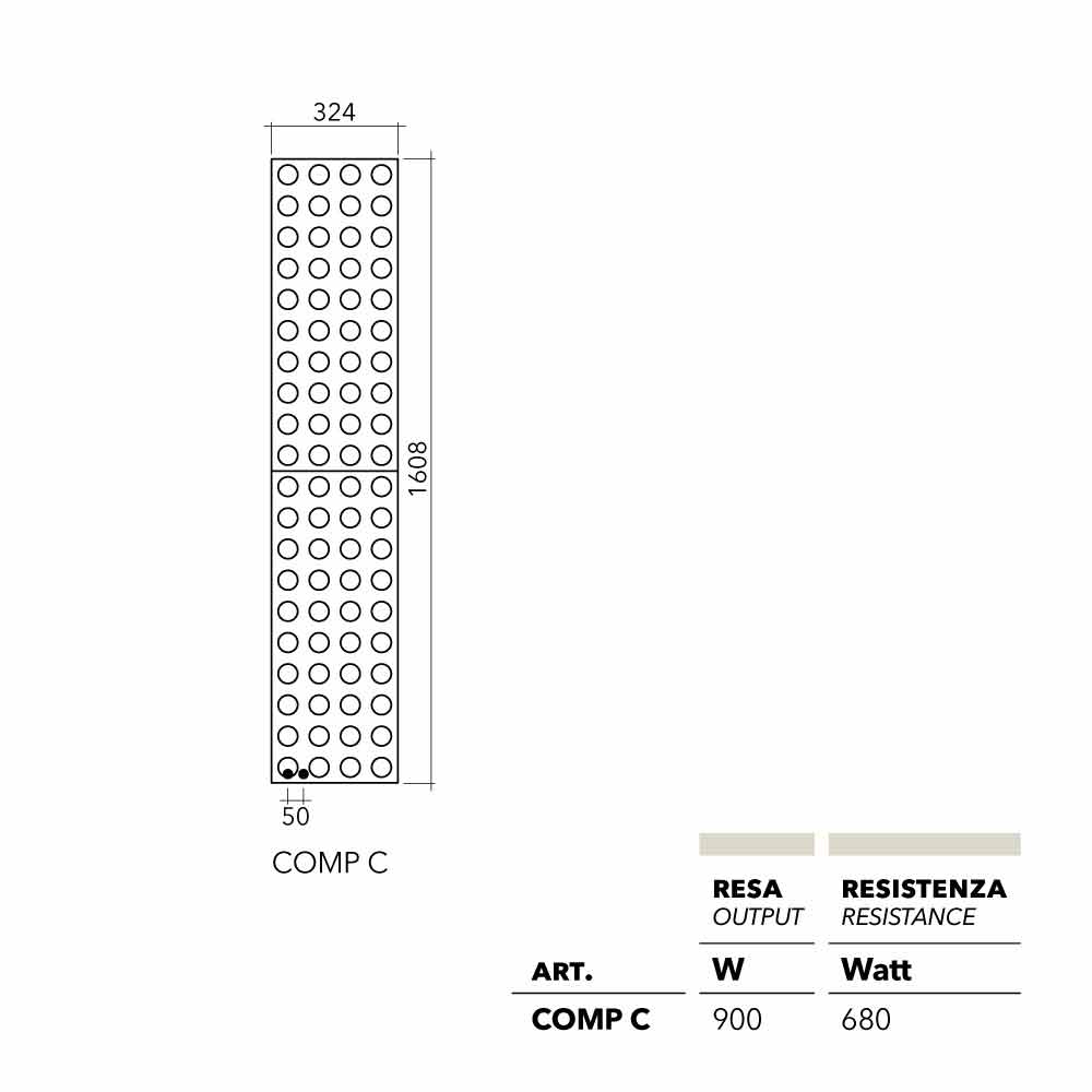 Das Produkt beinhaltet: - Heizbatterie - Abdeckung - Ventil und Rücklaufverschraubung nicht thermostatisierbar - Entlüftungsventil Wandmontage - In der Verbundversion wird ein Verbindungssatz zwischen den Modulen mitgeliefert