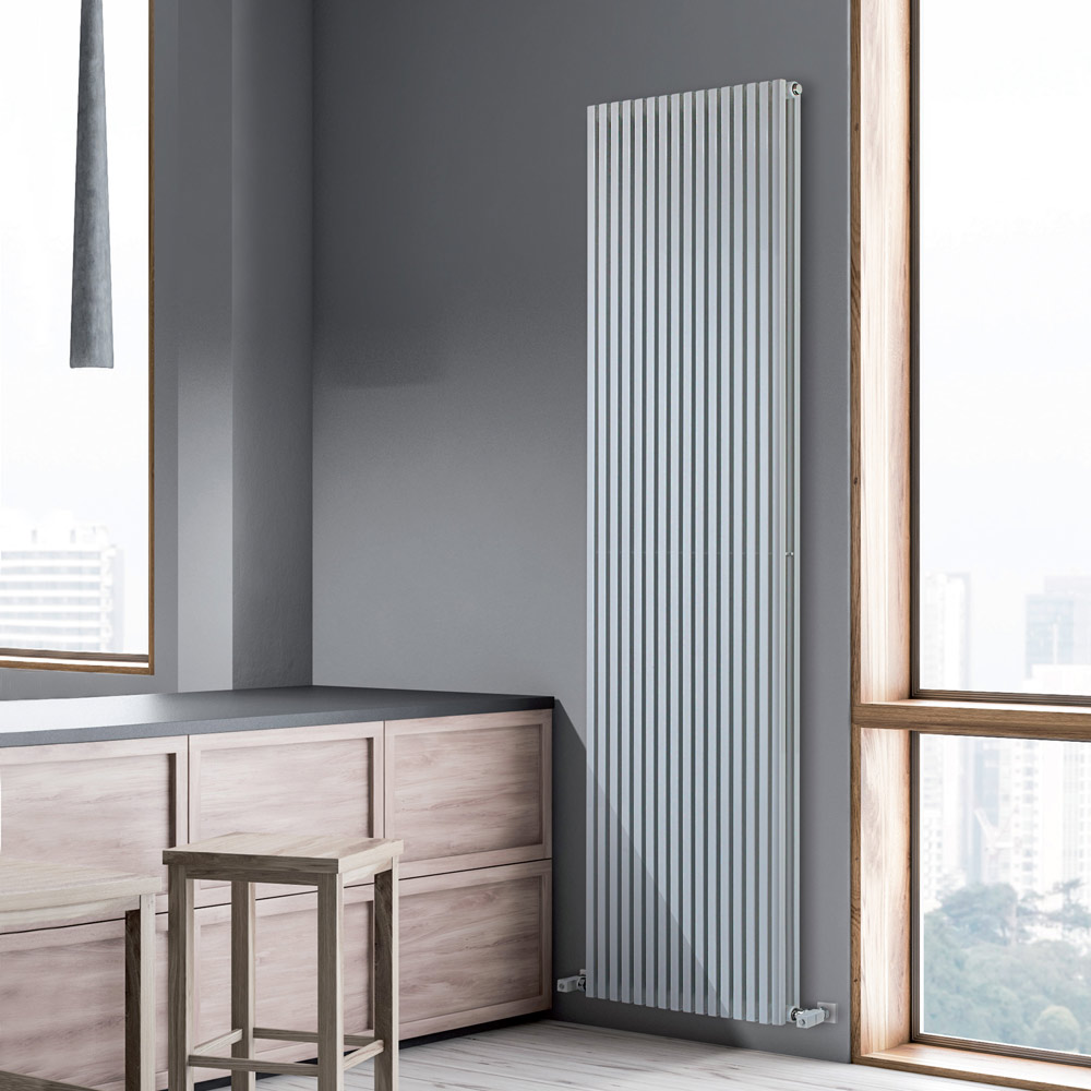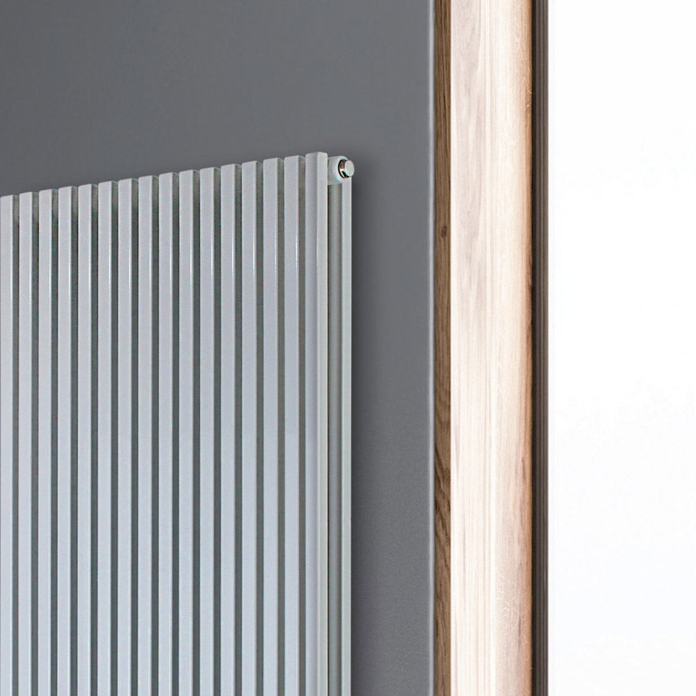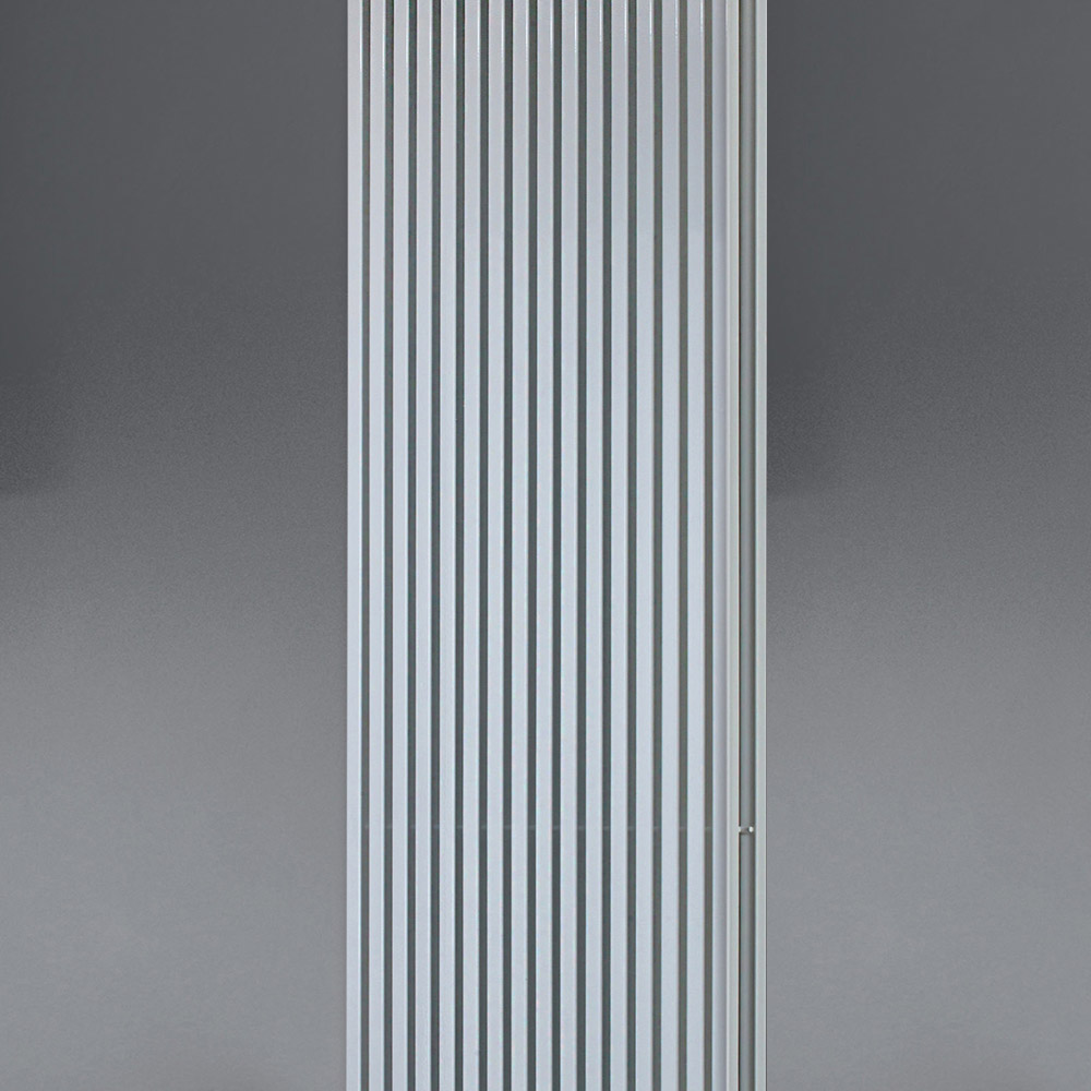 Hydraulischer Heizkörper aus Kohlenstoffstahl mit rein glänzender weißer Oberfläche, bestehend aus einer doppelten Reihe vertikaler Elemente mit einem quadratischen Querschnitt von 2 cm, die an horizontale Verteiler mit einem Durchmesser von 3,5 cm geschweißt sind, vollständig in Italien hergestellt, inklusive Wandbefestigungssatz, Entlüftungsventil und Blindstopfen . Der gesamte Produktionsprozess findet in einer Fabrik in der Nähe von Treviso, nur wenige Kilometer von Venedig entfernt, statt, wo Qualität ein ständiges Ziel ist . Qualität ist gleichbedeutend mit viel Liebe zum Detail und der Auswahl der zuverlässigsten Materialien. So entstehen Heizkörper mit höchster Reinheit in Design und Funktionalität.