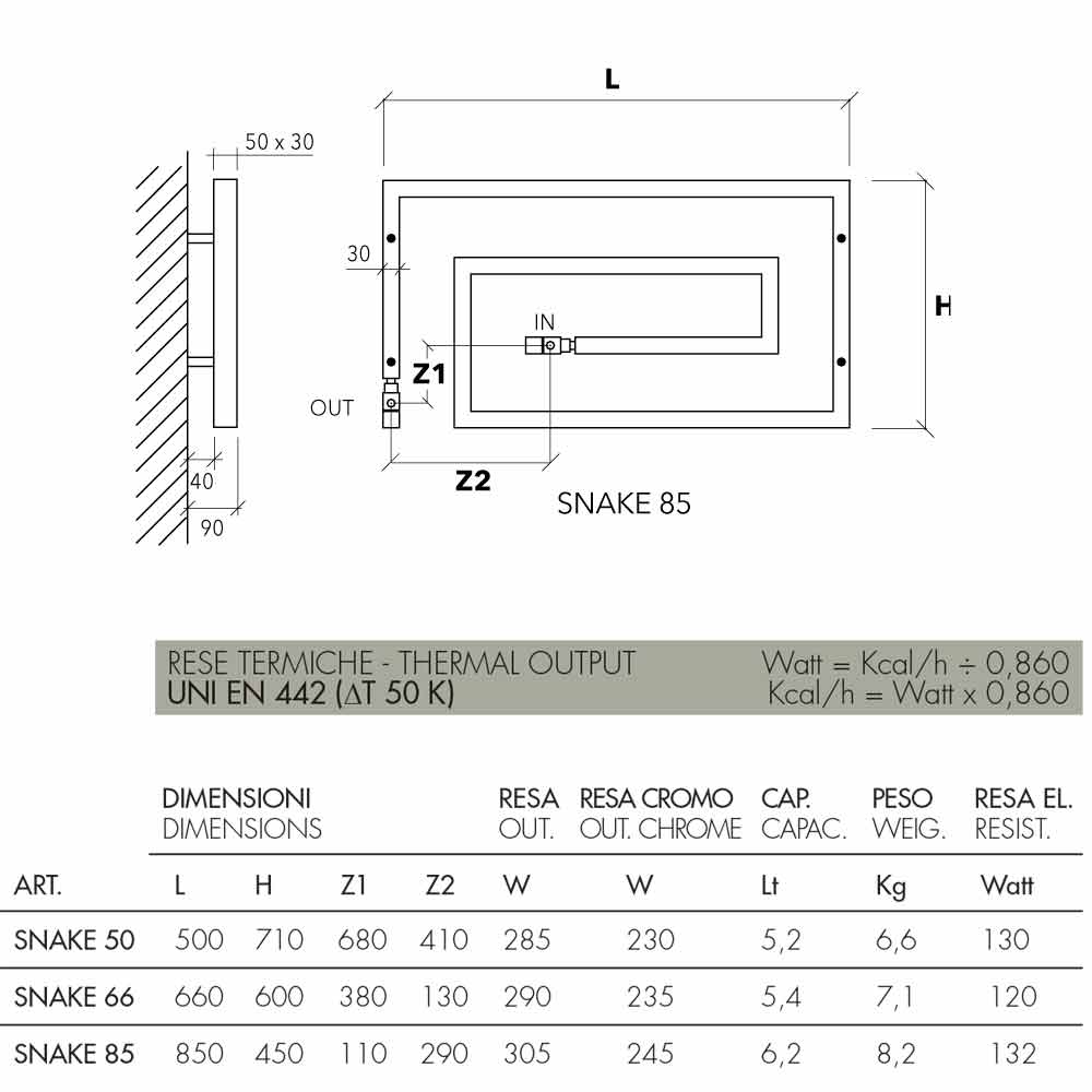 | Maße | L.850 mm, H.450 mm, Achsabstand1 110 mm, Achsabstand2 290 mm, Wärmeleistung 245 Watt, Kapazität 6,2 Lt, Gewicht 8,2 kg |