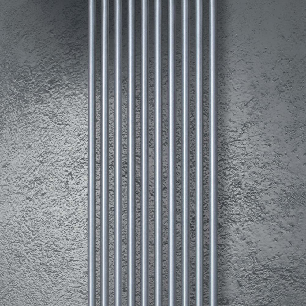 Hydraulischer Heizkörper aus Kohlenstoffstahl mit SATS-Finish, bestehend aus einer Reihe vertikaler Elemente mit einem Durchmesser von 2,5 cm, die an horizontale Verteiler mit einem Durchmesser von 3,5 cm geschweißt sind, vollständig in Italien hergestellt, inklusive Wandbefestigungssatz, Entlüftungsventil und Blindstopfen . Dieses Produkt vereint Technologie und formale Präsenz und wird zu einem echten Designobjekt, einer Quelle des Wohlbefindens und des ästhetischen Vergnügens. Es ist viel mehr als eine einfache Wärmequelle, es ist ein Möbelstück, das Umgebungen personalisieren und vervollständigen kann. Jeder Produktionsschritt wird in einer Fabrik in der Nähe von Treviso, nur wenige Kilometer von Venedig entfernt, durchgeführt, wo Qualität das ständige und angestrebte Ziel ist. Qualität als Synonym für höchste Liebe zum Detail und Materialauswahl höchster Zuverlässigkeit. So entstand dieser Heizkörper mit purem Design und Funktionalität in seiner höchsten Form.
