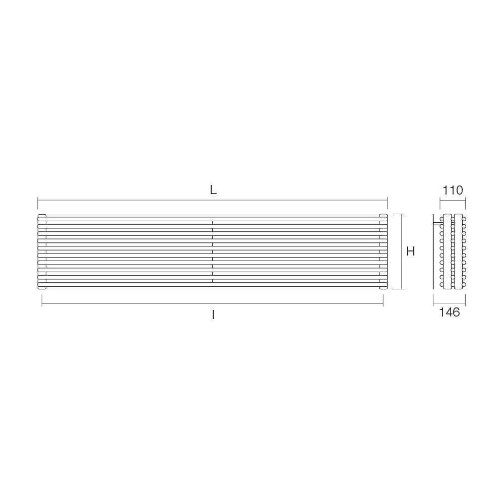 Hydraulischer Heizkörper aus Kohlenstoffstahl mit GRGS-Finish, bestehend aus einer dreifachen Reihe horizontaler Elemente mit einem Durchmesser von 1,6 cm, die an vertikale Verteiler mit einem Durchmesser von 3,5 cm geschweißt sind, vollständig in Italien hergestellt, inklusive Wandbefestigungssatz, Entlüftungsventil und Blindkappe . Es vereint Technologie und formale Präsenz und wird so zu einem echten Designobjekt, das Wohlbefinden und ästhetischen Genuss schenkt. Es ist nicht nur eine Wärmequelle, sondern ein Möbelstück, das die Umgebung personalisieren und vervollständigen kann. Seine Qualität ist als vollständig in Italien hergestelltes Produkt garantiert.