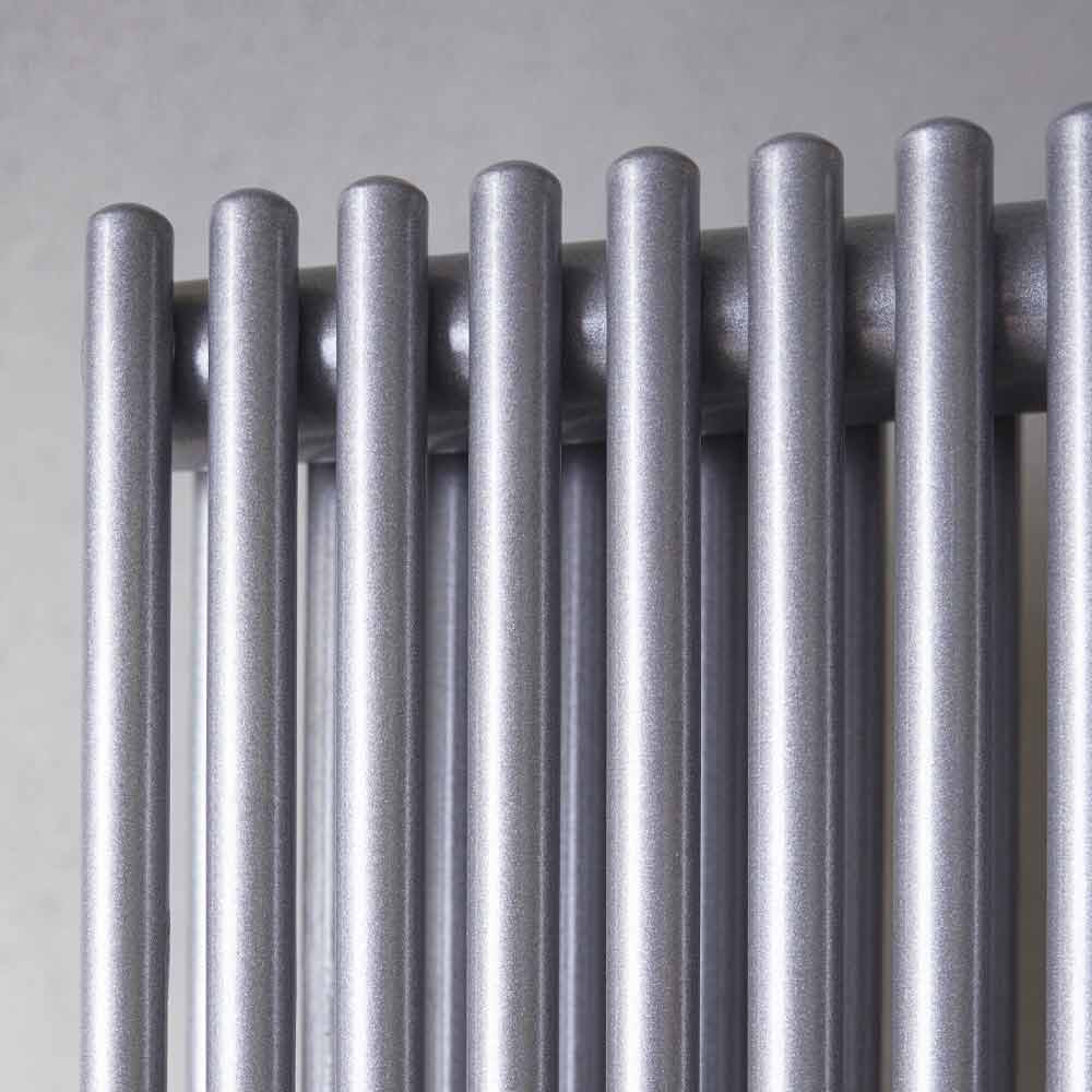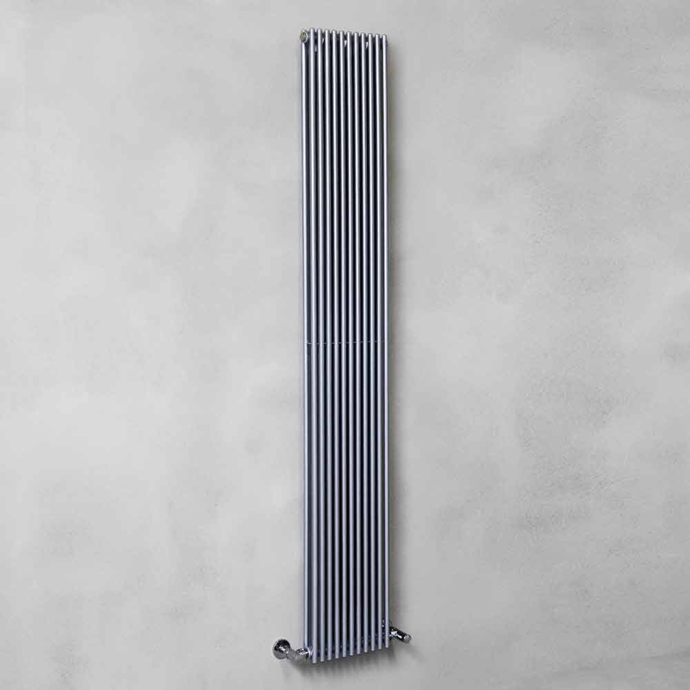 Kühler besteht aus vertikalen Rohren mit einem Durchmesser von 16 mm und Verteilern mit einem Durchmesser von 35 mm, für ein einfaches und zeitloses Design, sehr vielseitig.
