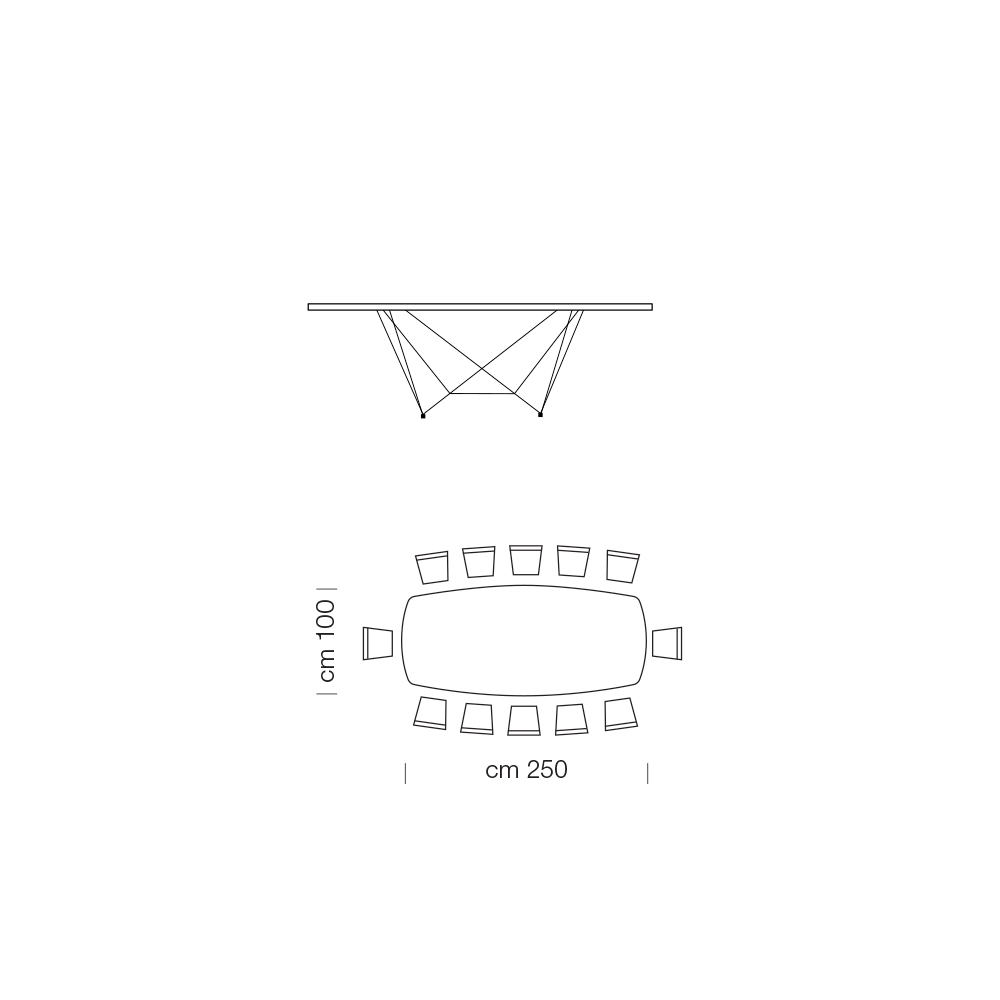 • L 250 x T 100 x H 73,3 cm (12 Sitzplätze);