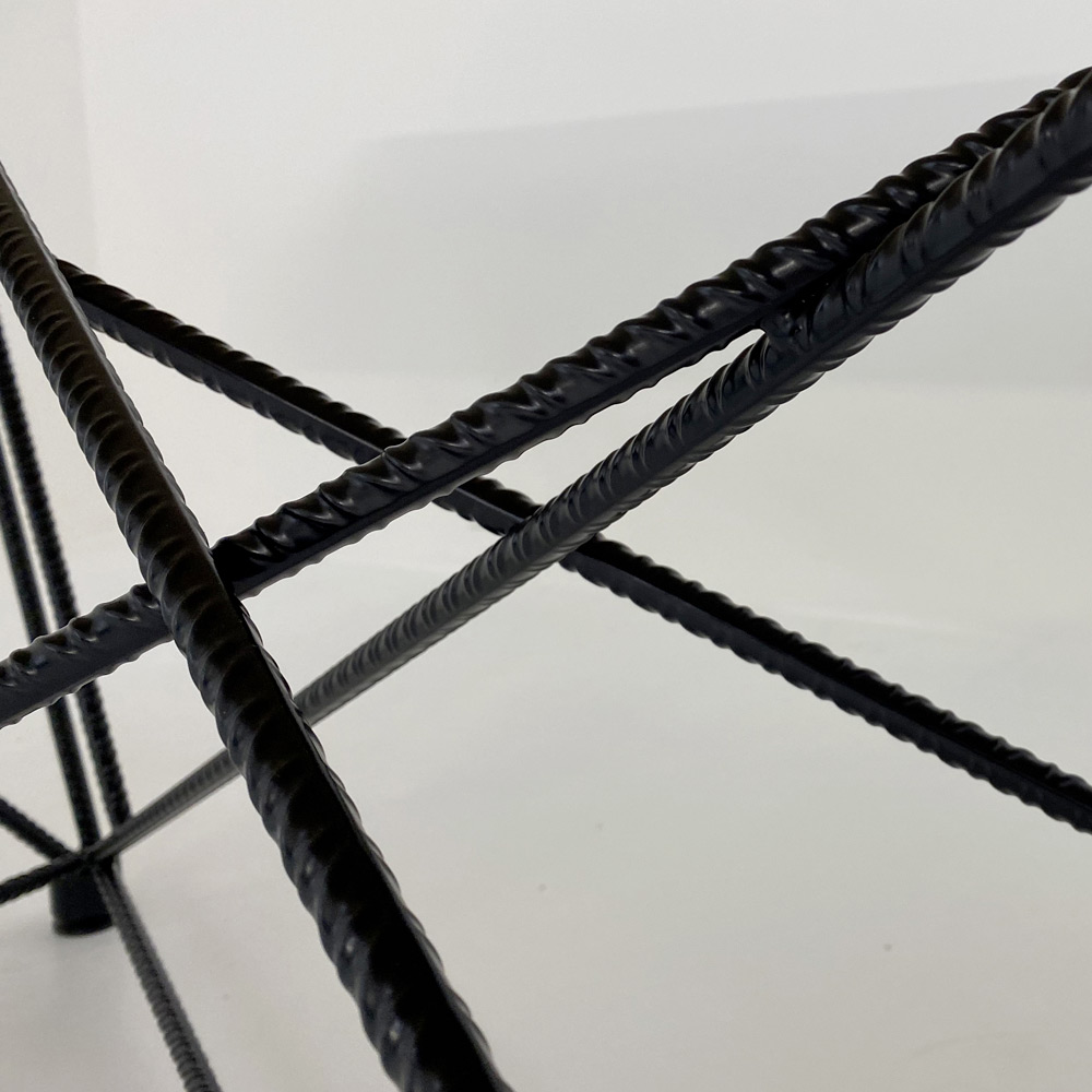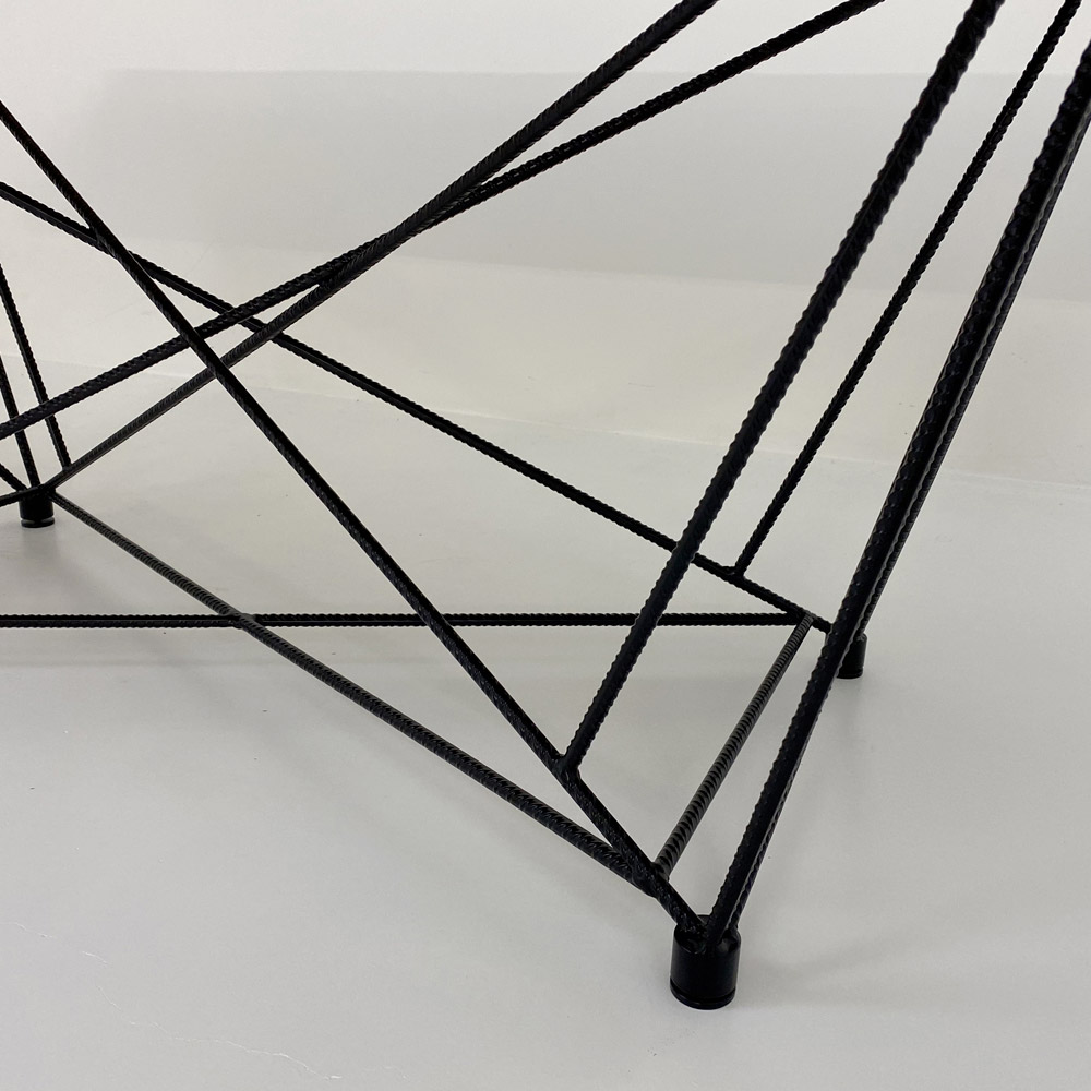 Tonnenförmiger Esstisch aus Laminatkeramik und schwarzem Stahl, hergestellt in Italien.