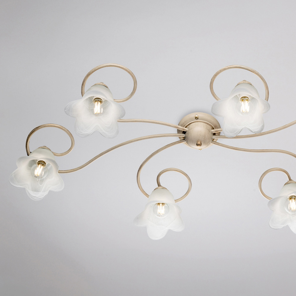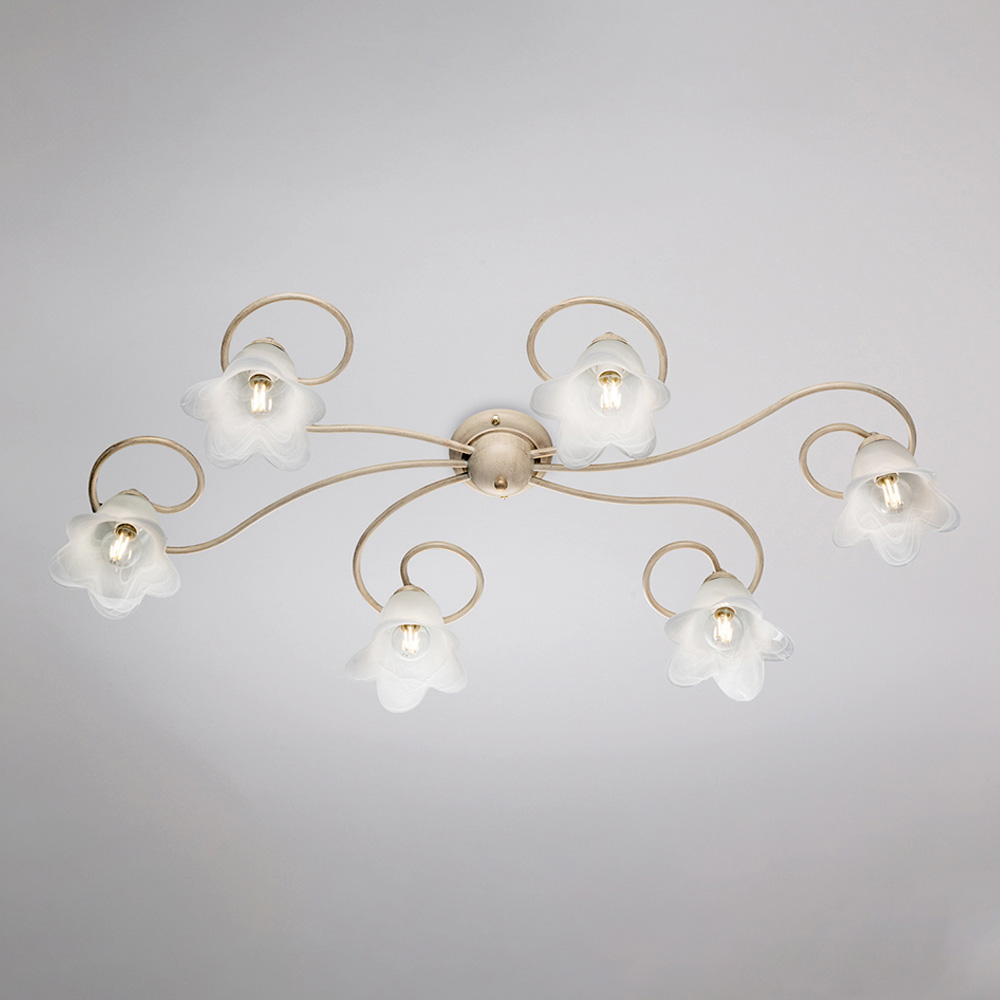 Die sorgfältig ausgewählten Materialien – Eisen und Glas – verleihen der Leuchte eine elegante Wirkung und ein angenehmes Licht. Diese vollständig in Italien gefertigte Deckenleuchte ist das Ergebnis akribischer Handwerkskunst, die Ästhetik und Funktionalität gleichermaßen vereint.