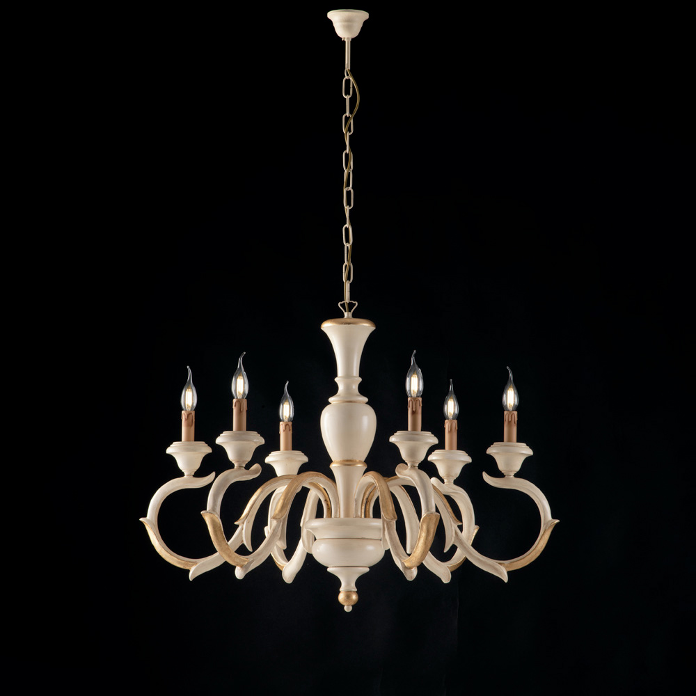Zeitlose Eleganz und meisterhafte Handwerkskunst vereinen sich in diesem klassischen, in Italien gefertigten Holzleuchter , der mit viel Sorgfalt und Liebe zum Detail gestaltet wurde. Die harmonische Struktur mit ihren geschwungenen Armen im traditionellen Stil verleiht dem Raum eine eindrucksvolle und zugleich raffinierte Eleganz.