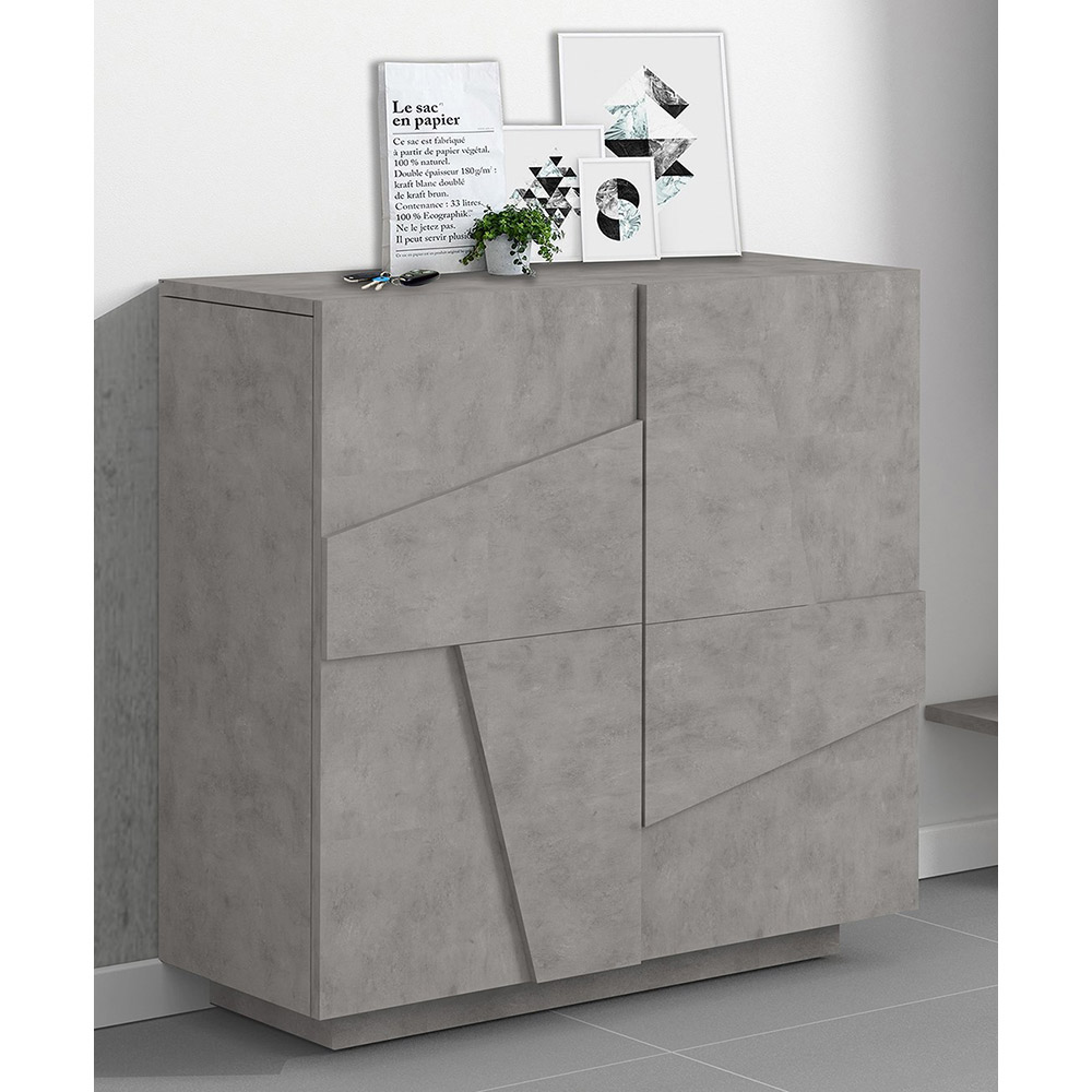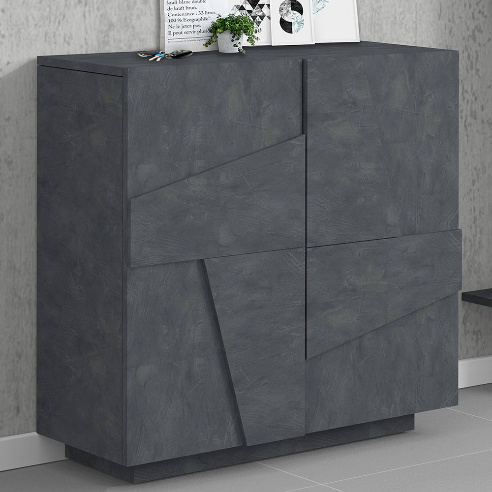 Das Schuhregal besteht aus 2 Flügeltüren, die durch die geometrische Reliefschnitzerei auf der Oberfläche besonders angefertigt wurden und 4 Behälterfächer schließen, die viel Stauraum garantieren. Es besteht aus Melamin und ist zu 100 % Made in Italy . Dieses Produkt eignet sich dank seiner schlichten und eleganten Oberflächen , die der Umgebung eine einzigartige und unvergessliche Note verleihen, zur Vervollständigung der Einrichtung jedes Wohnbereichs. Das verwendete Material garantiert Qualität und Beständigkeit auch im Laufe der Zeit.