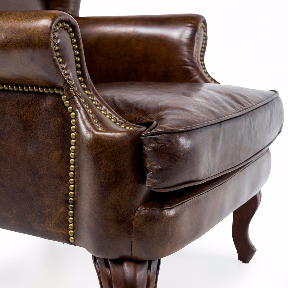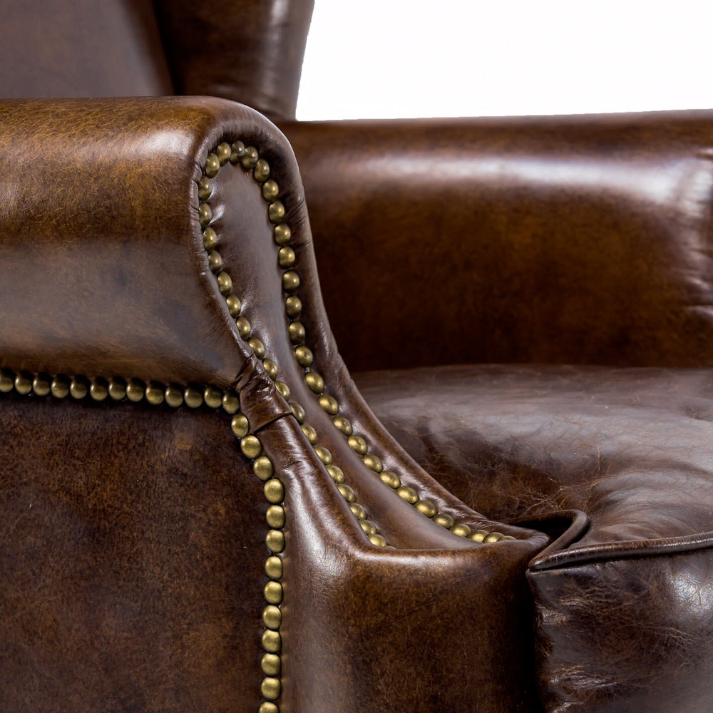 Wohnzimmersessel aus echtem dunkelbraunem Leder im klassischen englischen Stil. Dieser Sessel ist Teil einer Kollektion, die sich durch zeitlose Schönheit und Geschmack auszeichnet, die sich dem Lauf der Mode und den Vorschlägen von Trends widersetzt. Solide und robuste Strukturen , Capitonnée-Verarbeitung, manuelles Stanzen und Nageln, Polsterung aus echtem Leder (fior di pelle) , verarbeitet mit einer besonderen Gerbung, die speziell entwickelt wurde, um dem Leder einen Vintage-, gealterten Look zu verleihen. Die Produkte dieser Kollektion zeichnen sich durch die raffinierte Bedeutung der Formen und wertvollen Materialien aus, die sie beleben. Es sind Sitze, die sich als perfekt zur Verschönerung hochwertiger Einrichtungsumgebungen erweisen, die Eleganz und Charakter zu ihrem Vorrecht machen.